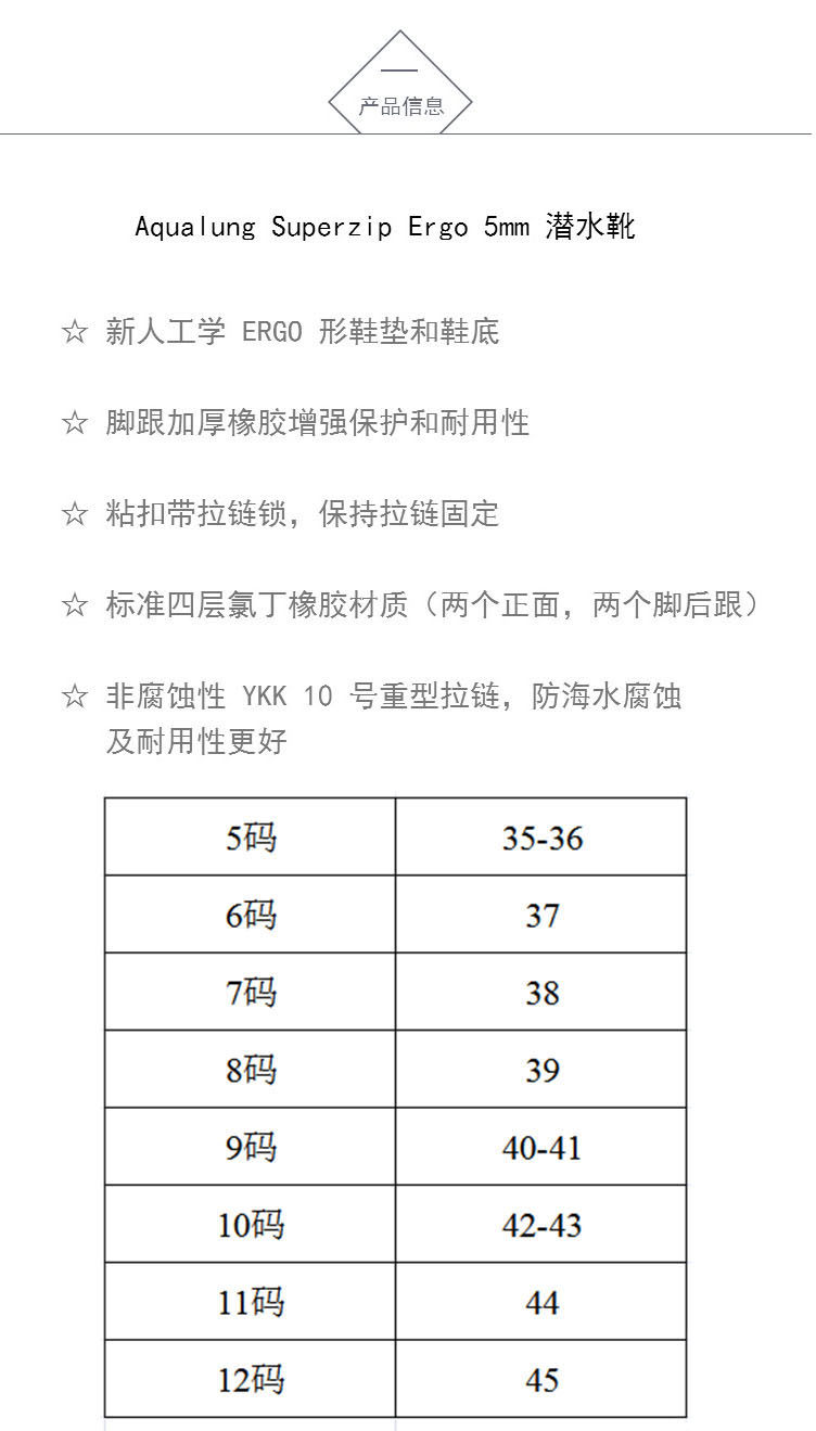 Aqualung Superzip ergo 5mm 娼滄 闈 娣辨 祬娴 祬娴 コ 娆惧 帤搴 曢 槻婊