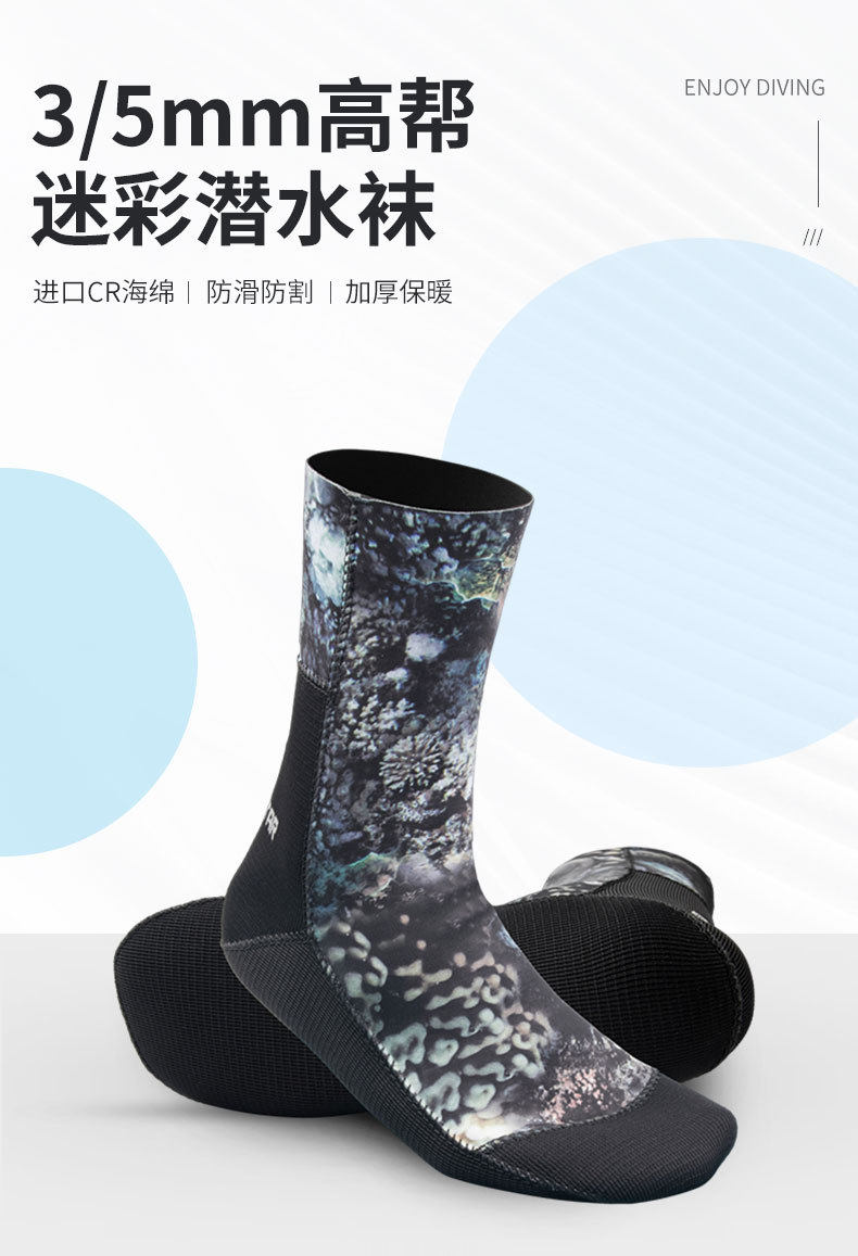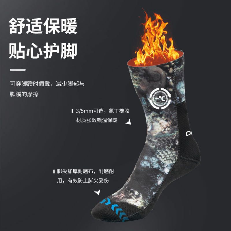 Носки для дайвинга толщиной 5 мм для мужчин и женщин, камуфляжные полусухие, сухие утолщенные, противопорезные, противоскользящие, противохолодные, теплые, для подводного плавания и серфинга, пляжные носки 3 мм.