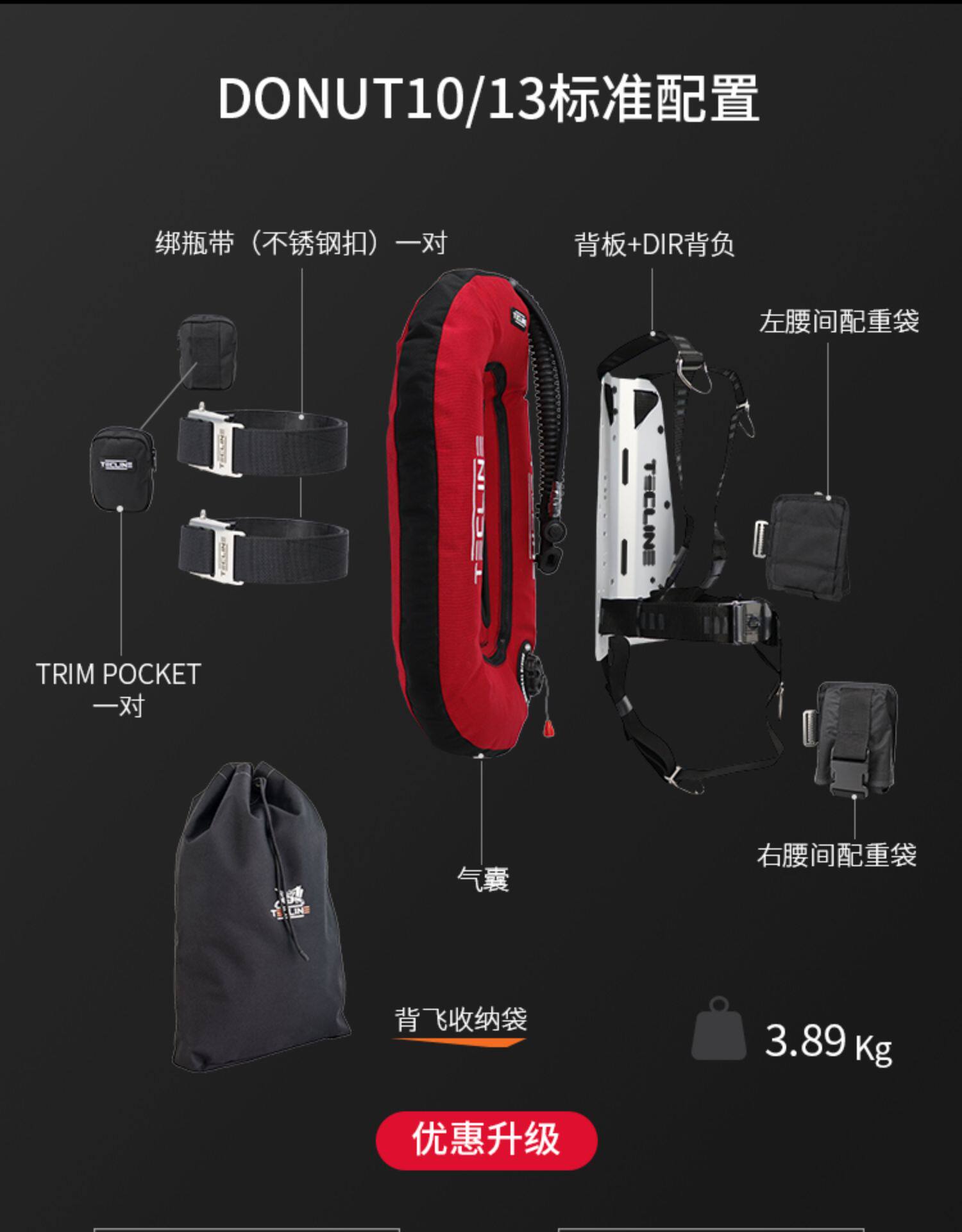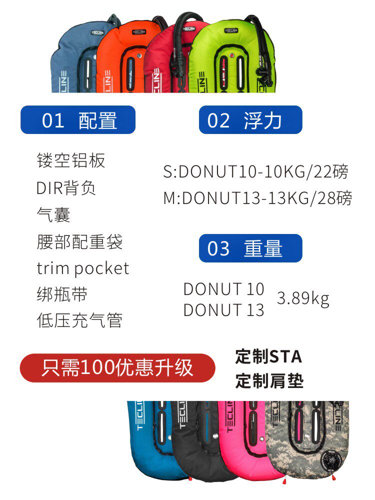 Tecline Donut 13/10 Технический дайвинг назад Dir BCD 28 -фунтовый ремень тяжелая сумка с низким давлением трубки с низким давлением