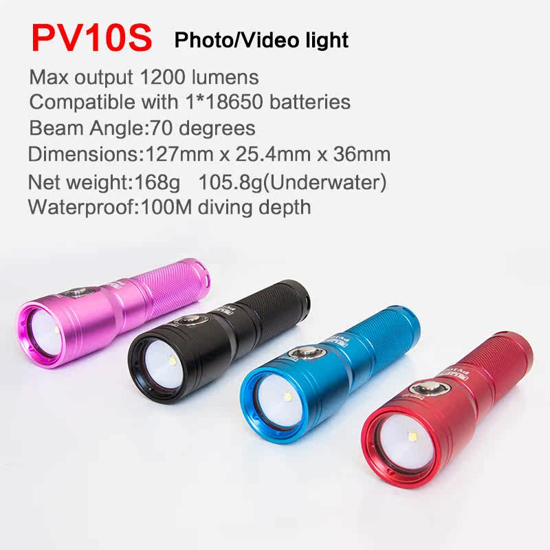 Scubalamp Pv10s Дайвинг подводной фотографии Дополнительное световое фонарик 1200 Профессиональные ночные подводные лодки.