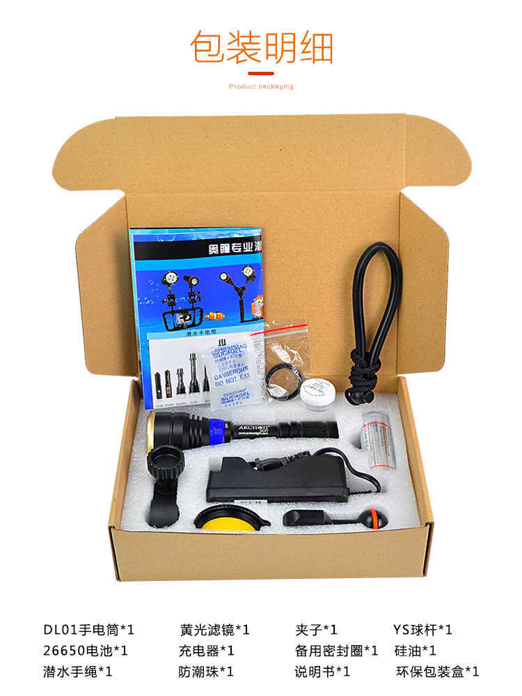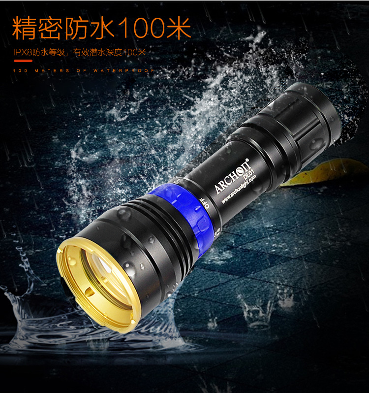 - Каждое дайвинг закончен, пожалуйста, промойте внешнюю поверхность фонарика прозрачной водой. После того, как фонарик высохнет внутри и снаружи, он правильно хранится.