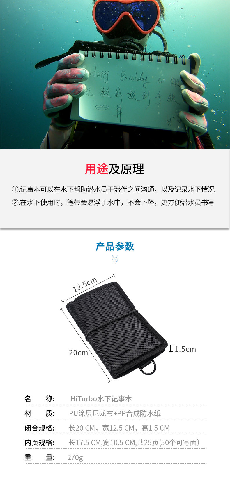 Блокнот для письма, водонепроницаемое снаряжение, дайвинг