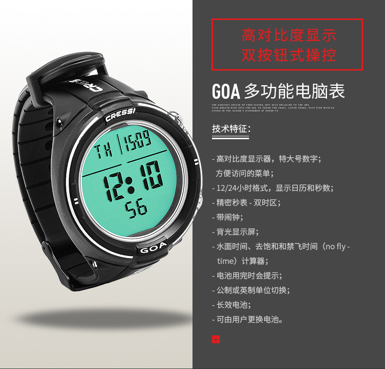 Итальянский Cressi Goa Diving Computer Watch Wate Water and Lung Deep Meter Stree Stree Dive Air High Oxygen