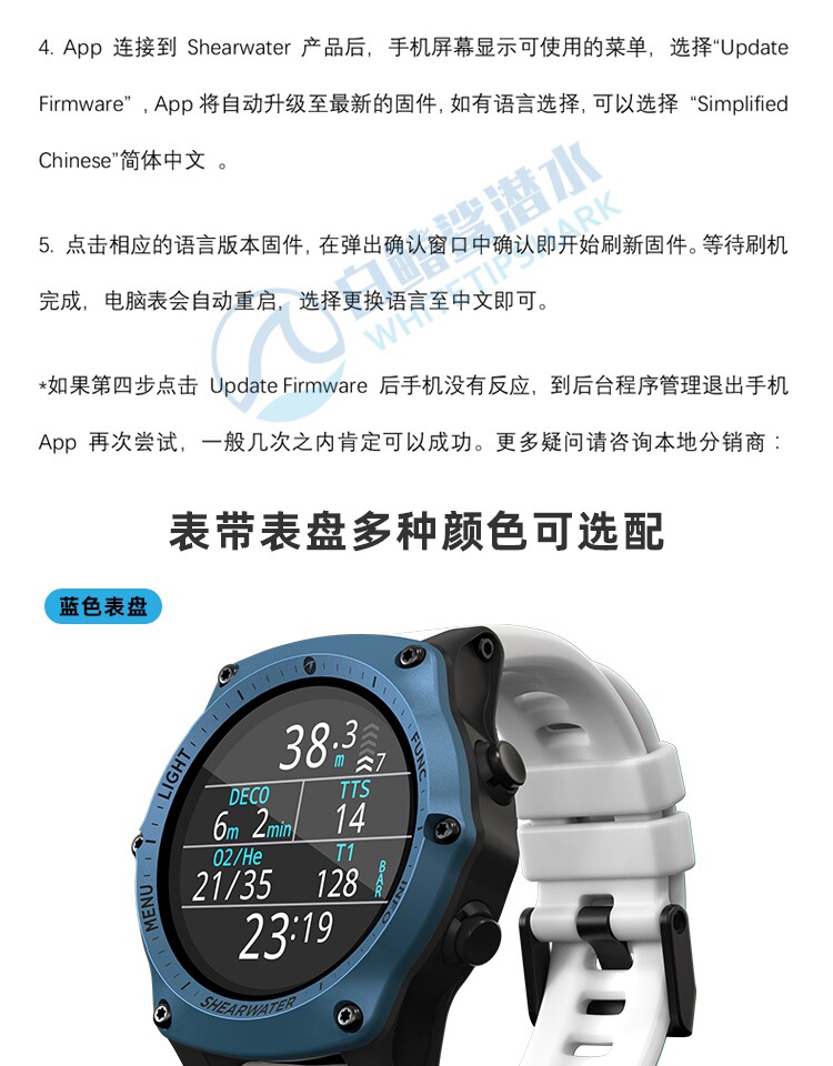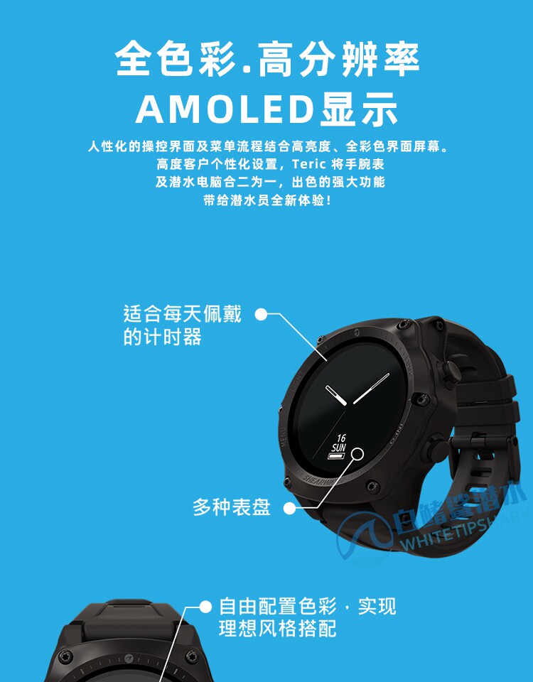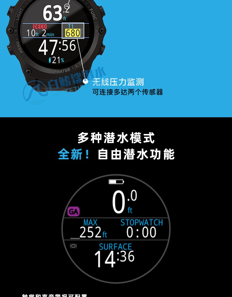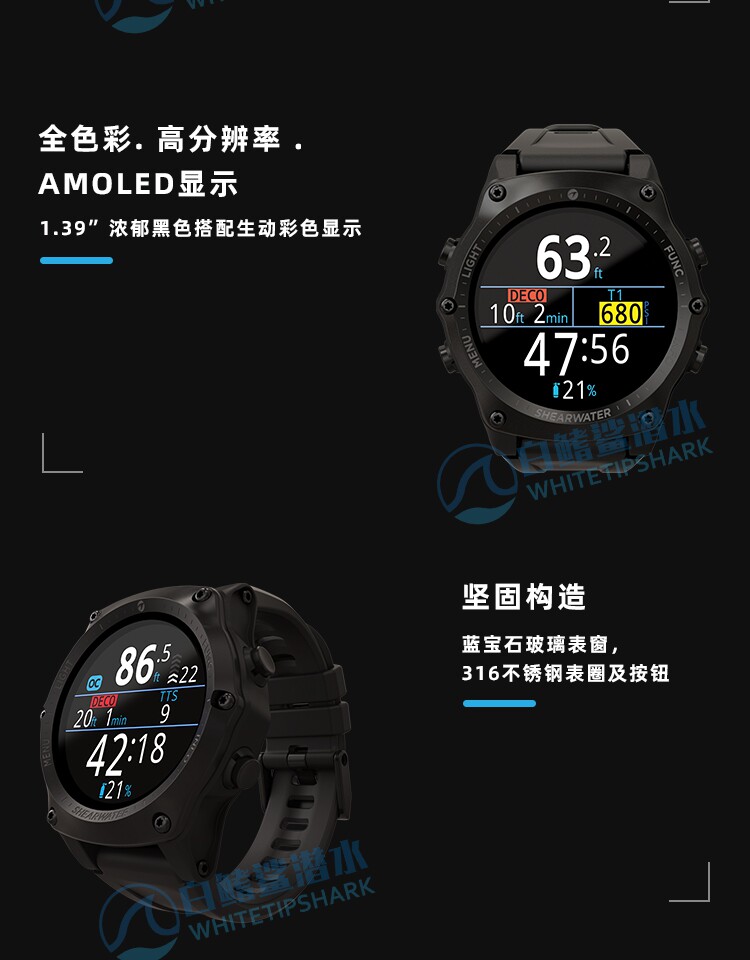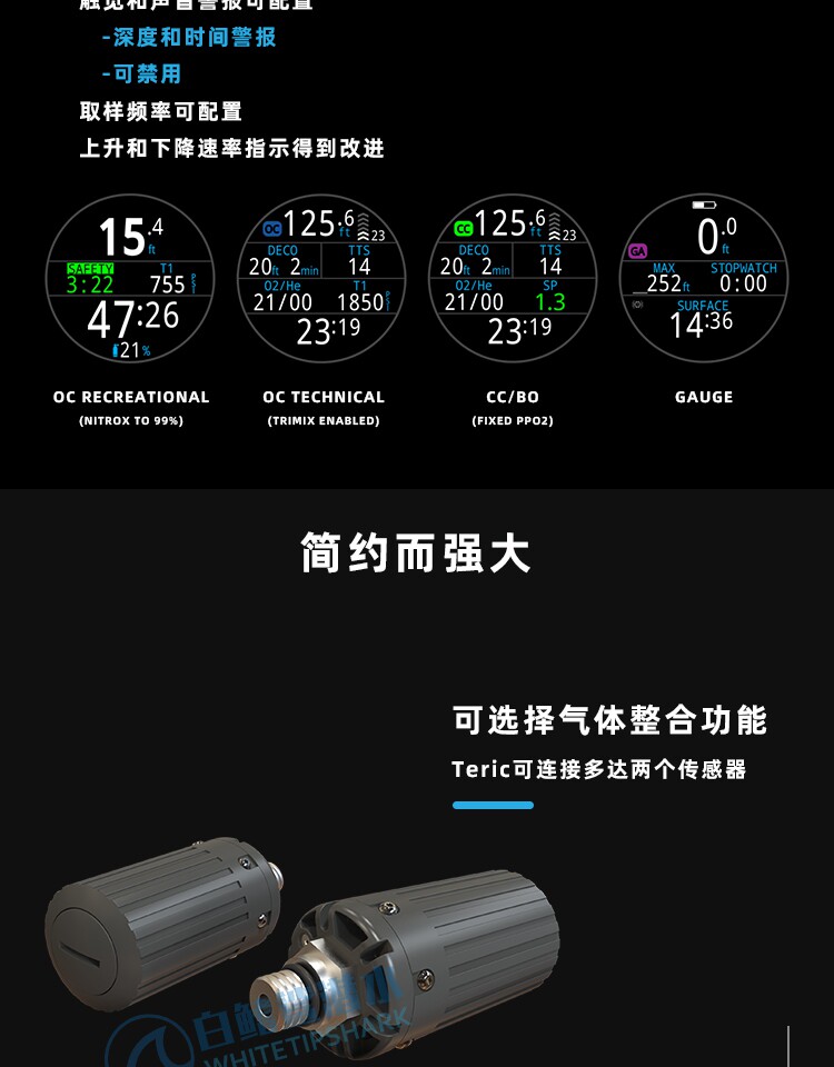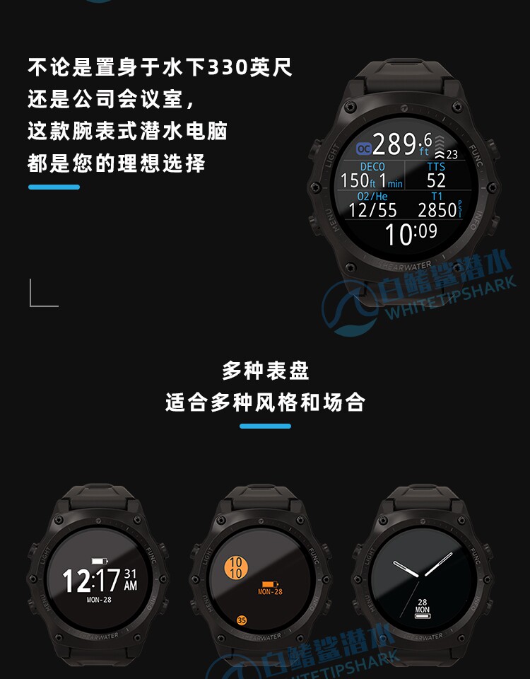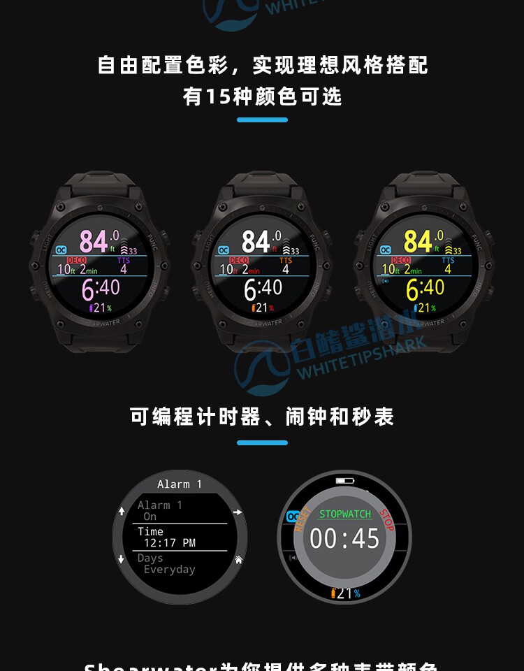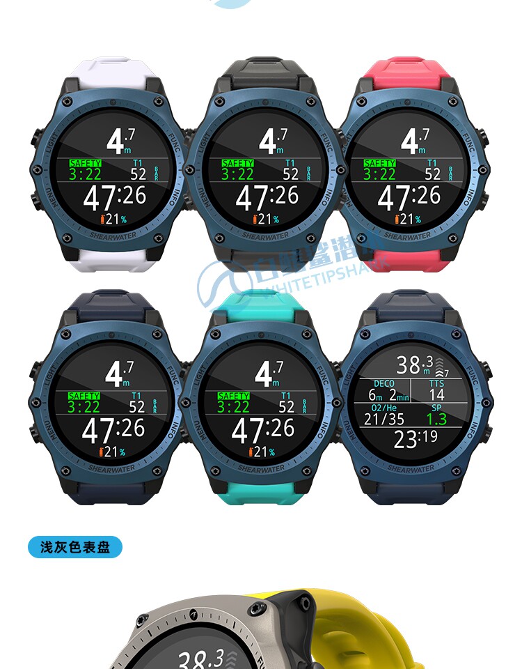 Белый -финный акула Sharwater Teric Diving Computer Watch Diving Sports Color Ecrem