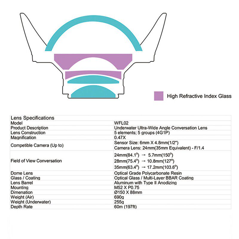 WEEFINE WFL02 24-мм плагин TG6 широкоугольный зеркал M52 с водонепроницаемой оболочкой TG4 TG-5 TG-6
