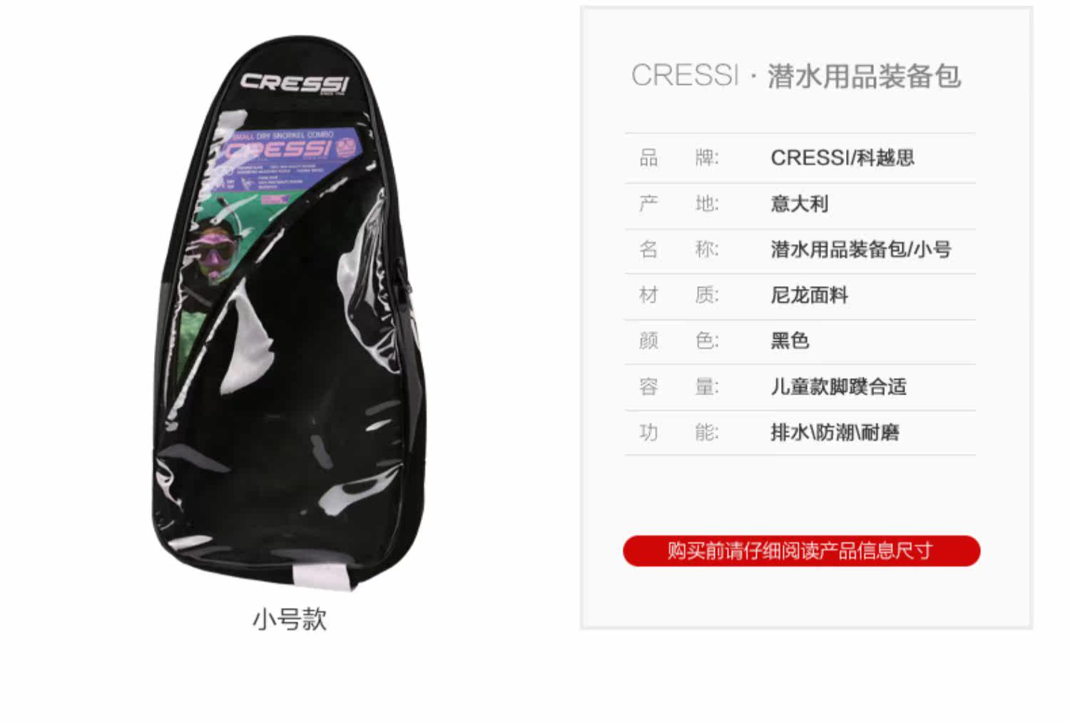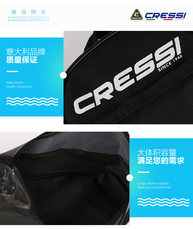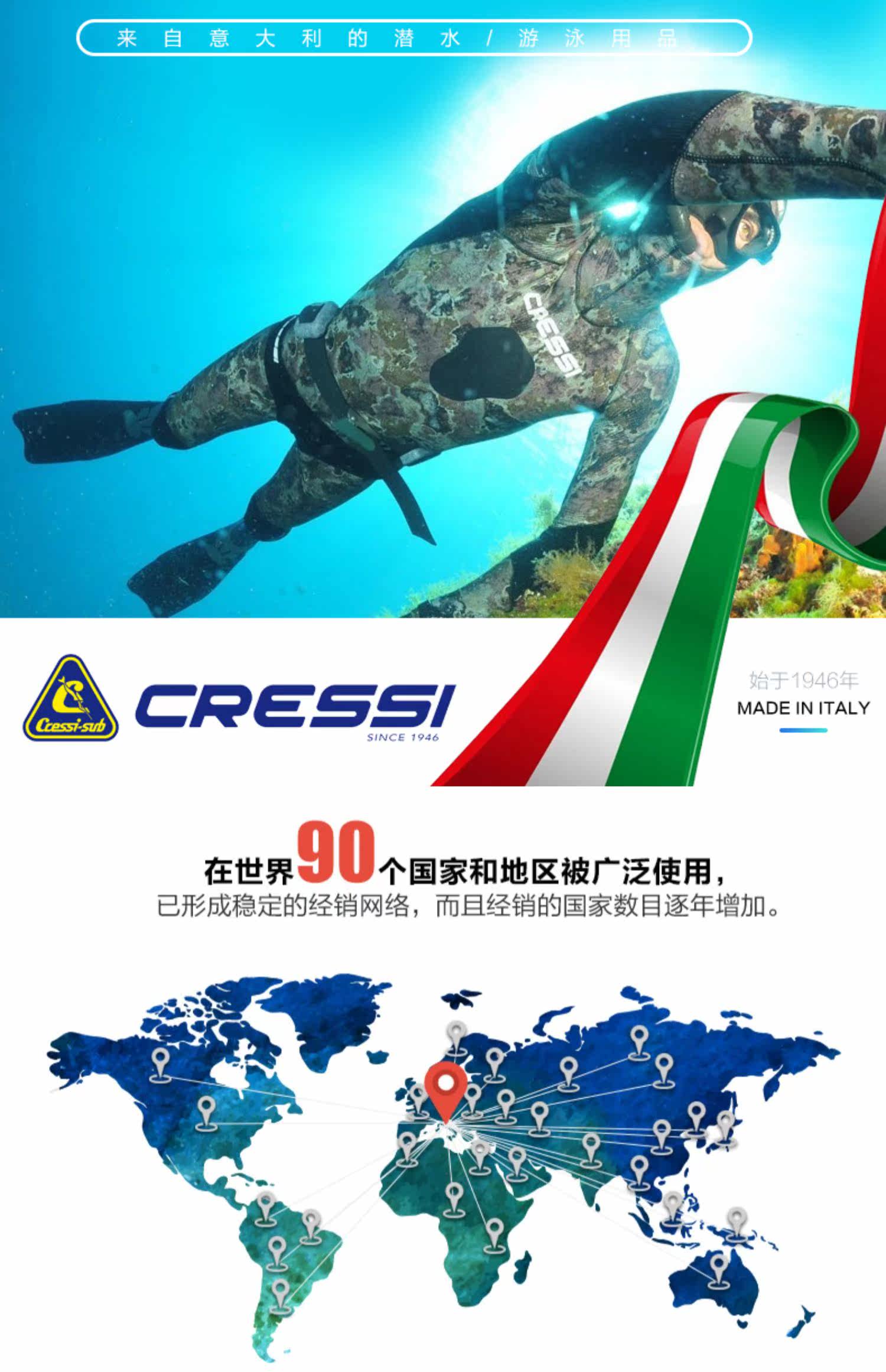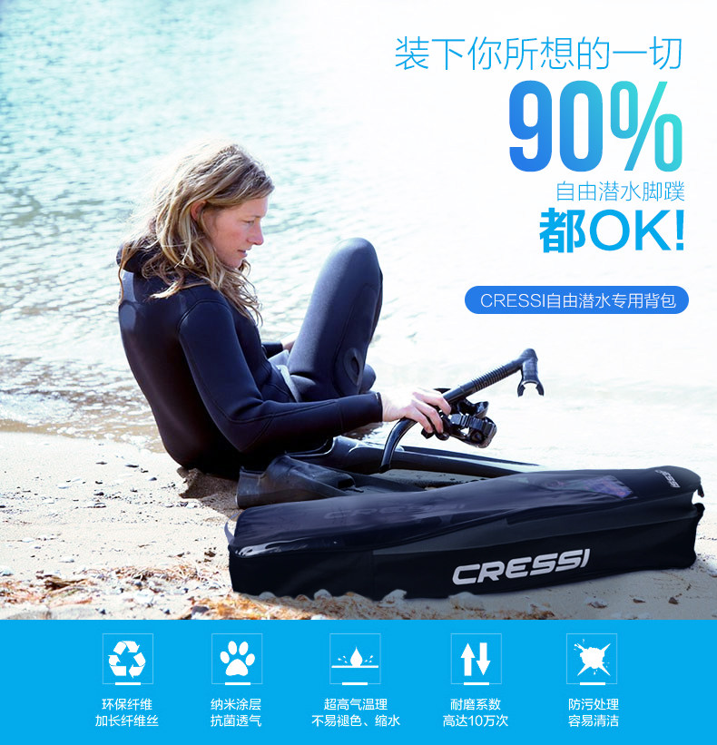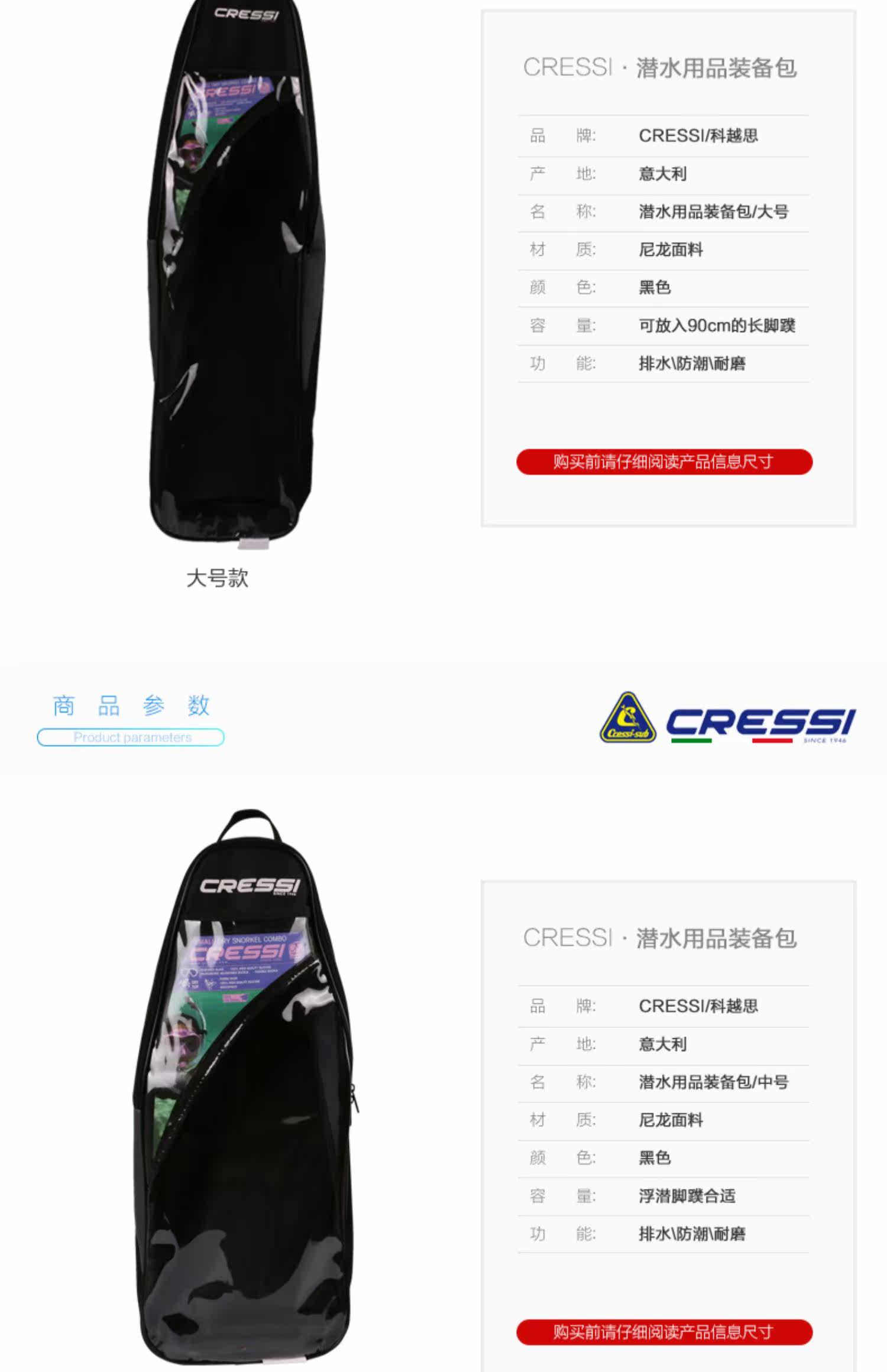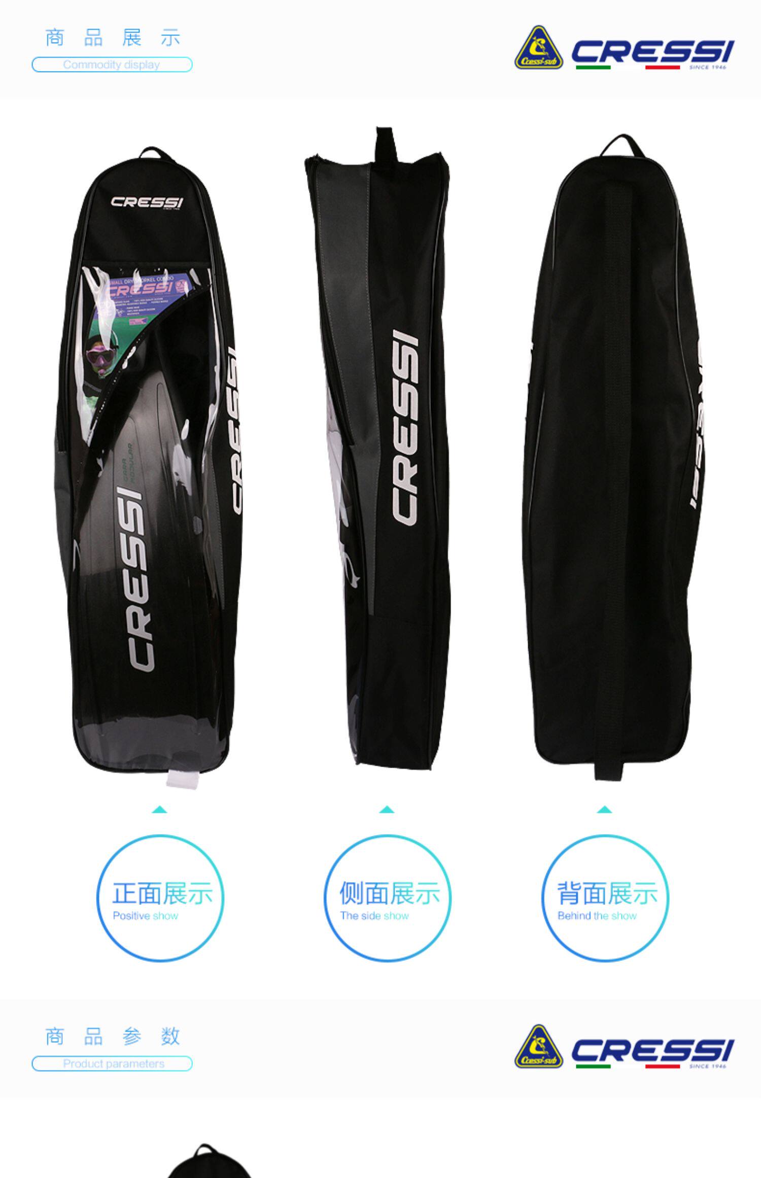 Итальянский Cressi Snorkeling Three Sucreure Bag Плавание дайвинг Длинные сумки для ног бесплатно дайв -лягушки для оборудования для оборудования рюкзак