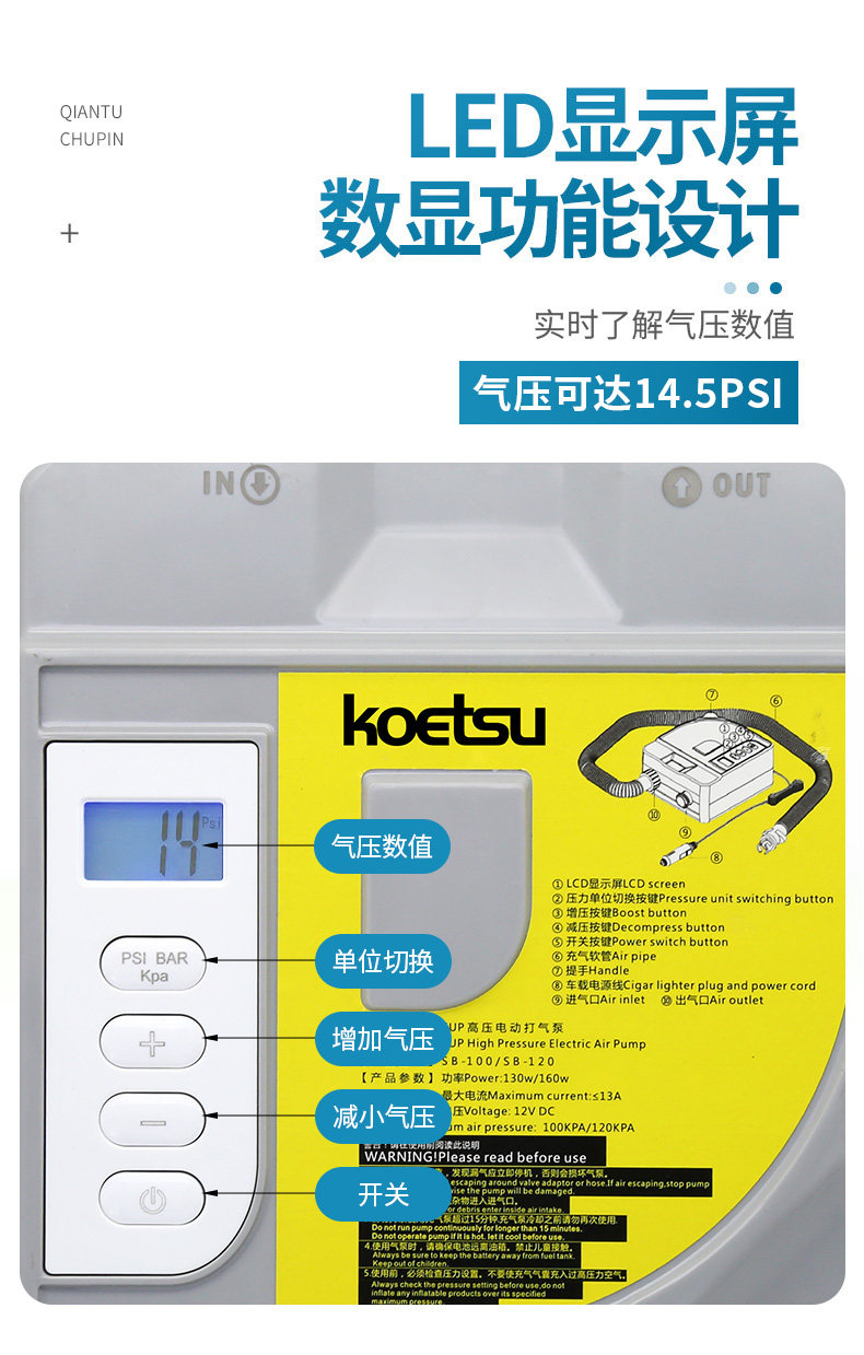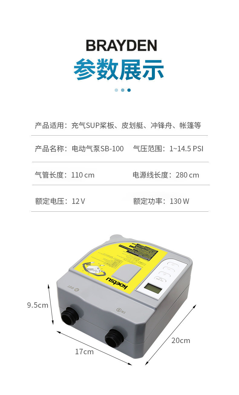 Электрический воздушный насос KOETSU SB100 для серфинга, рисования веслами, автомобильный воздушный насос постоянного тока