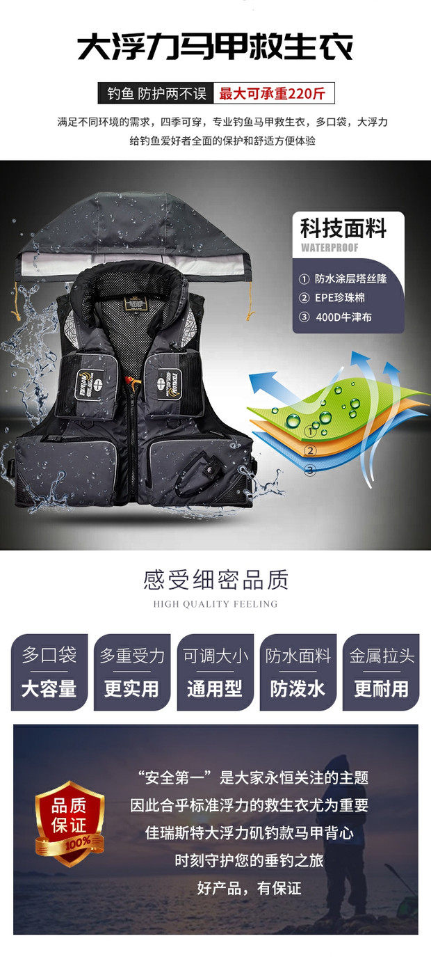 Профессиональный водонепроницаемый универсальный спасательный жилет для взрослых для рыбалки