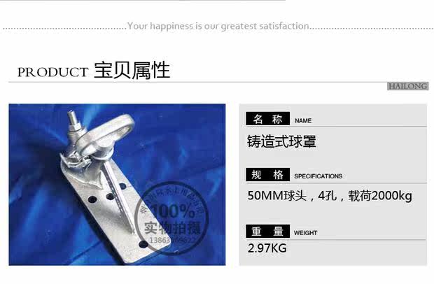 Горячеоцинкованная литая шаровая крышка, шаровая головка 50 мм, 4 отверстия, разъем для аксессуаров прицепа, сцепное устройство для прицепа