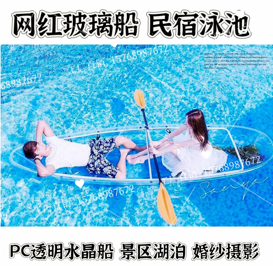 Чистая красная стеклянная лодка ПК Прозрачный хрустальный корабль двойной свадебный отель отель прозрачная лодка.