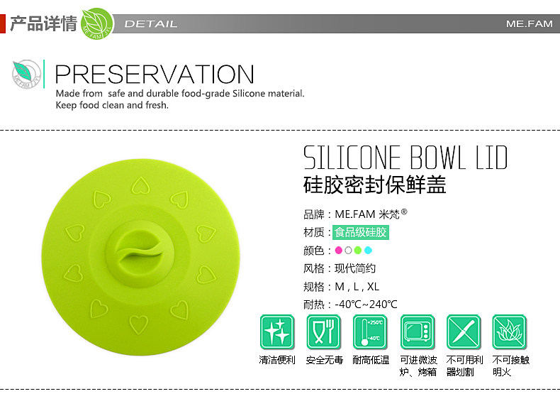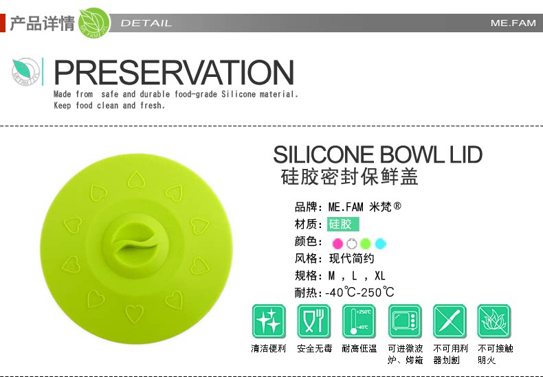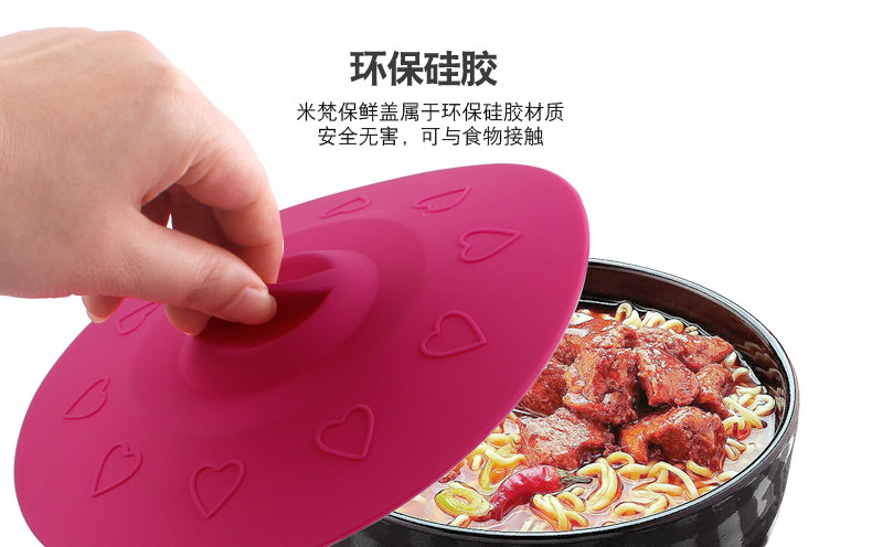 Эта крышка чаши изготовлена из экологически чистого и безопасного силикона. Она нетоксична и загрязняет. Она устойчива к низкотемпературной (-40 ° C-2050 ° C). Она может использоваться в холодильнике и микроволновой печи.