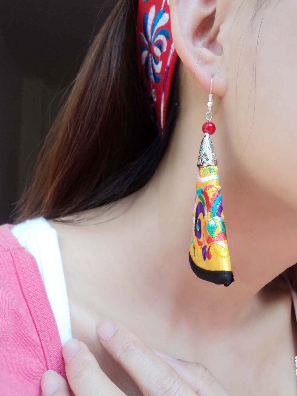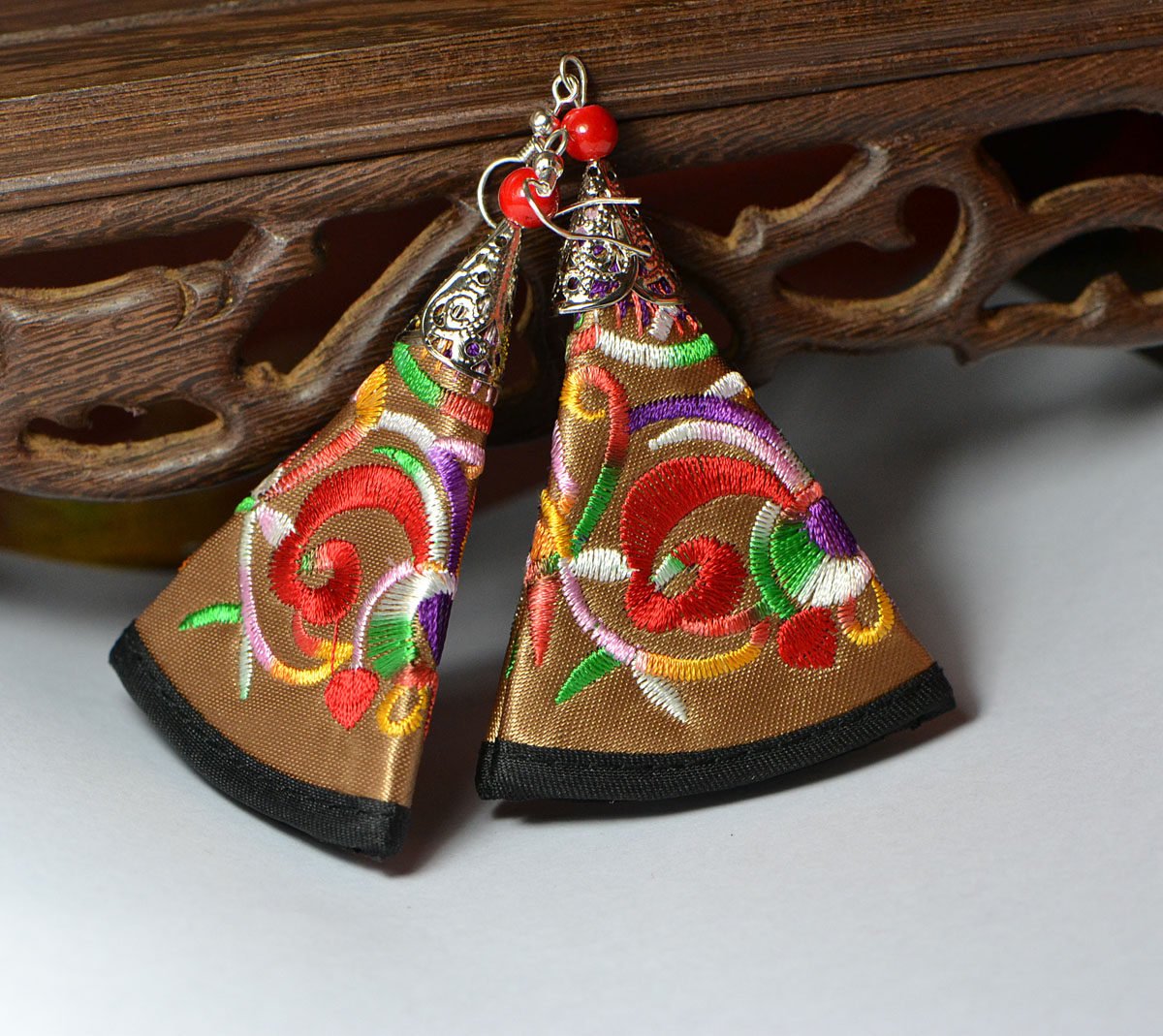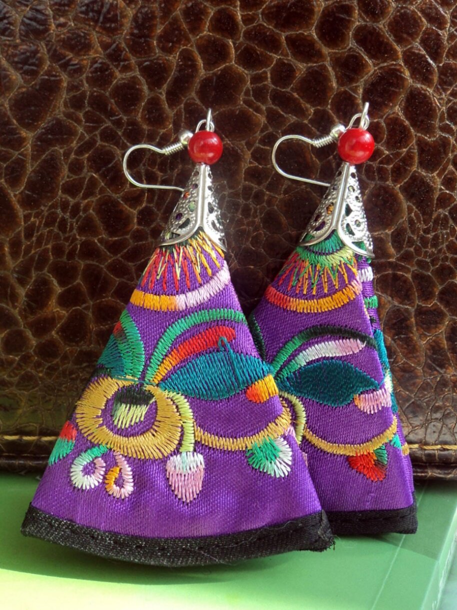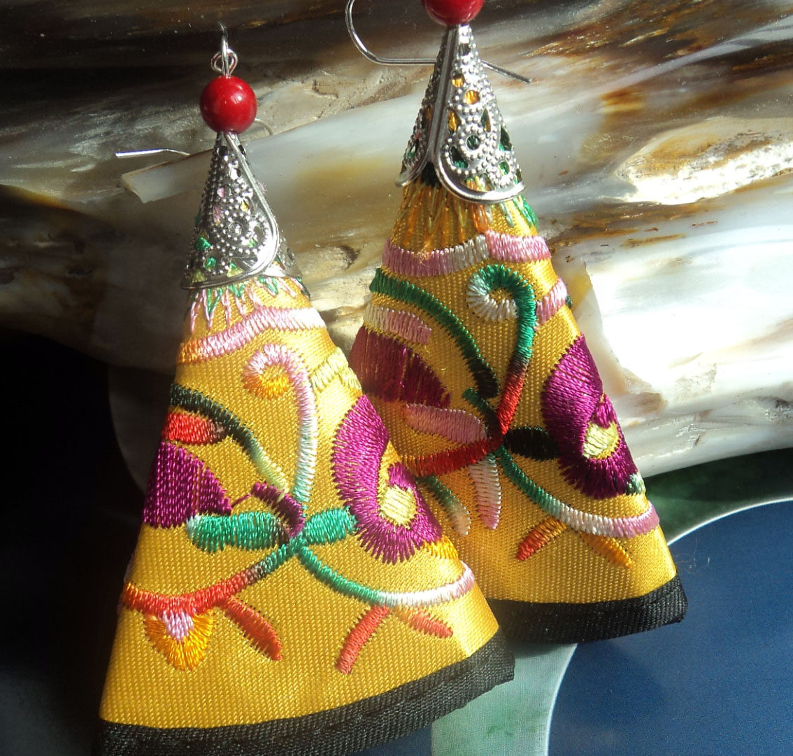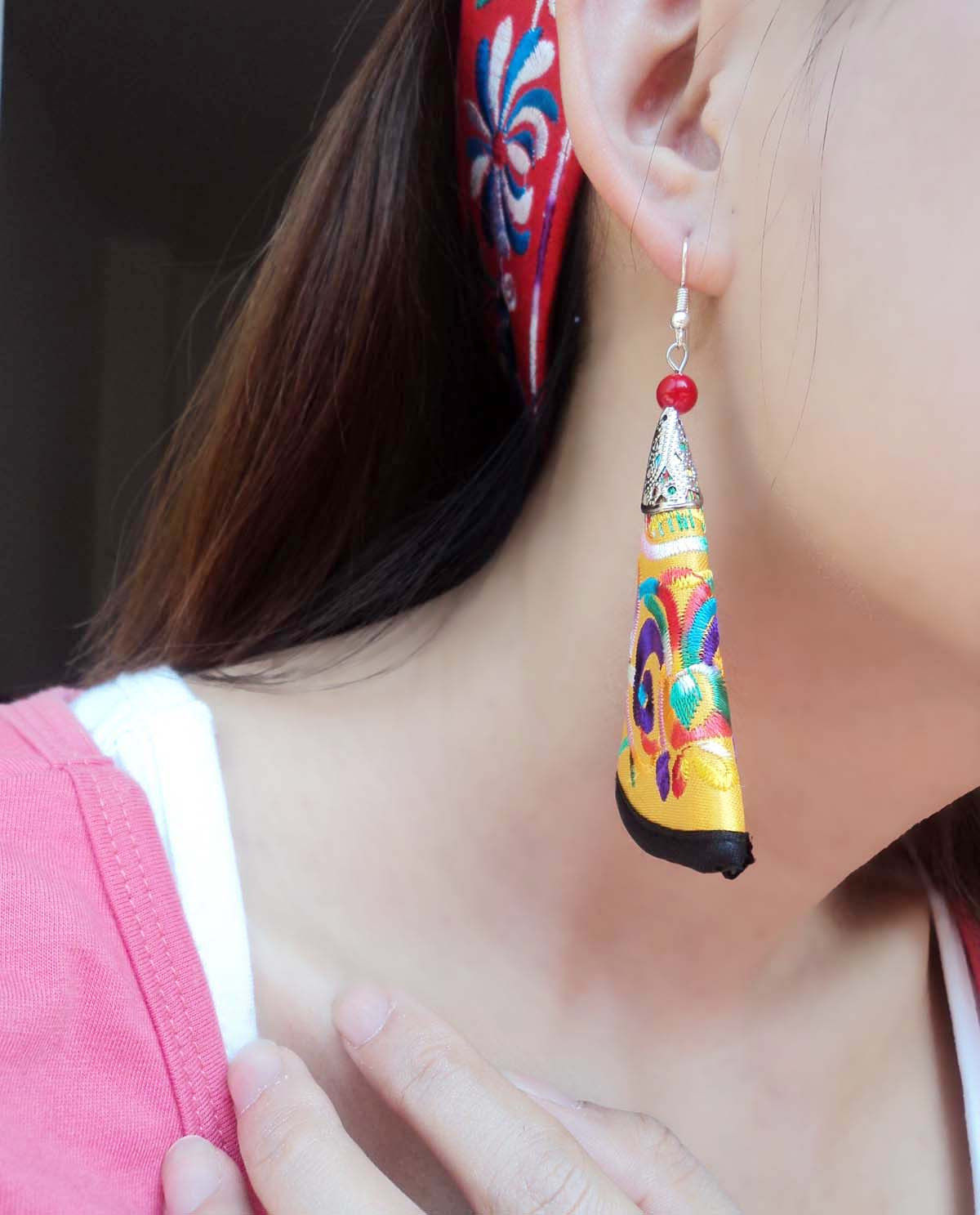 Этнические серьги из провинции Юньнань, аксессуар, ткань, этнический стиль, с вышивкой