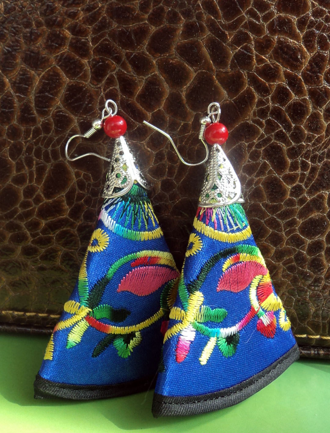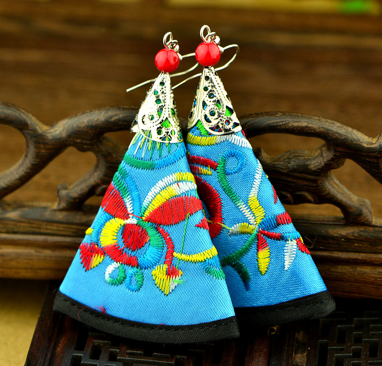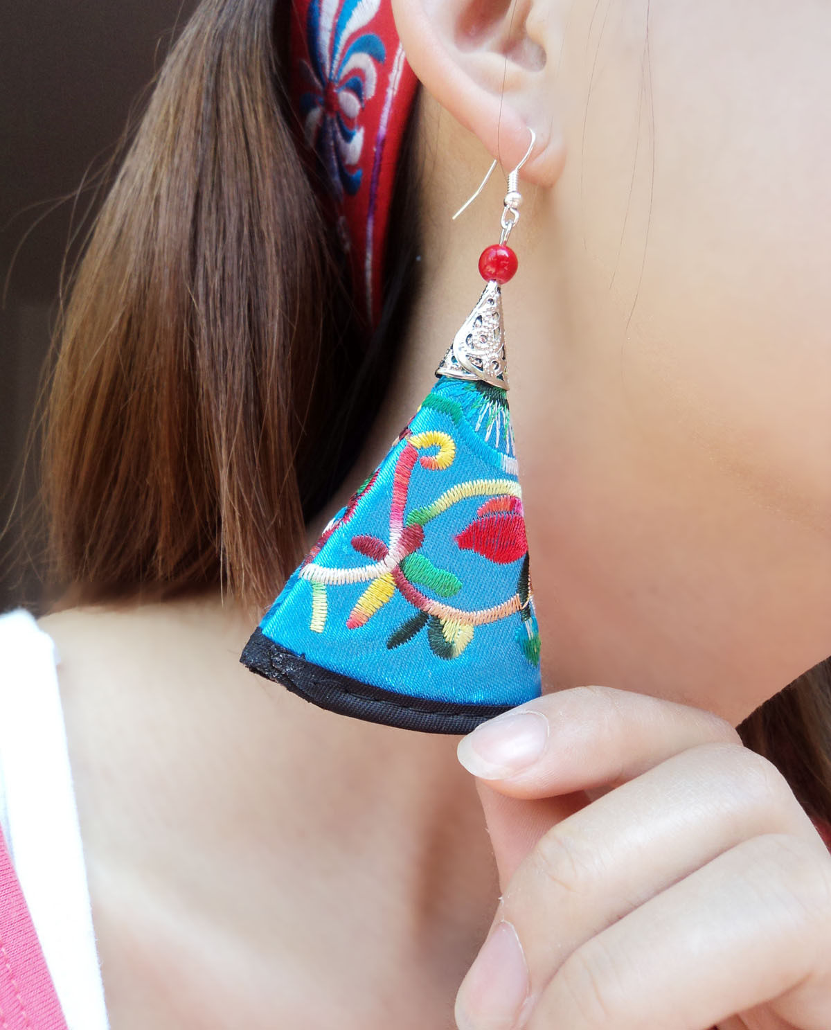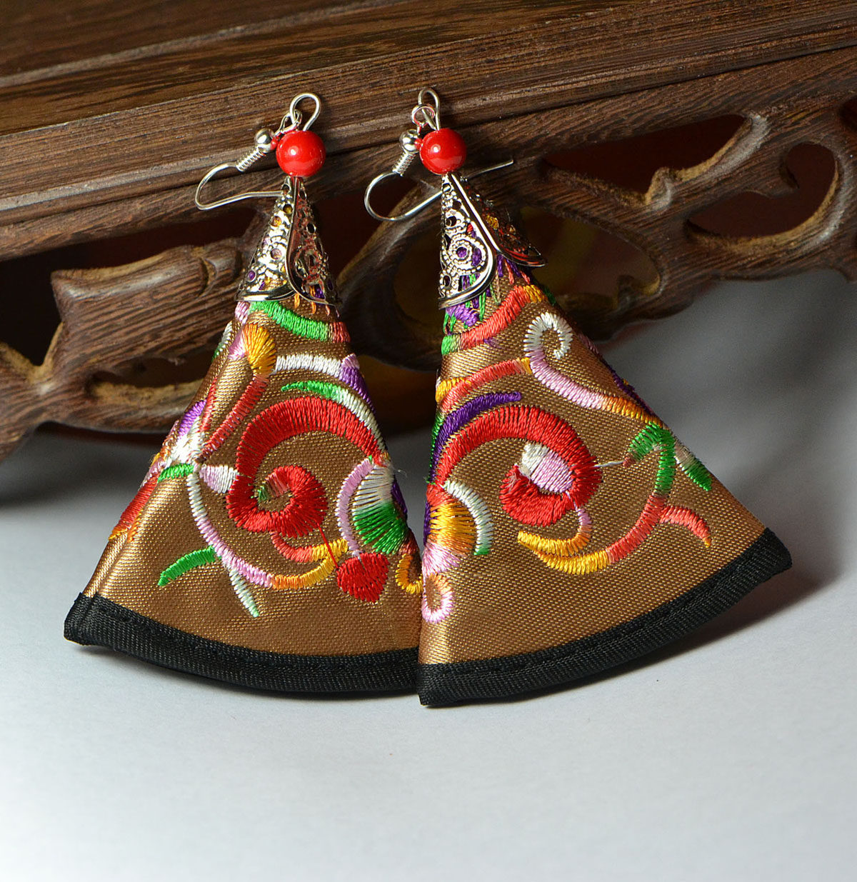 Этнические серьги из провинции Юньнань, аксессуар, ткань, этнический стиль, с вышивкой