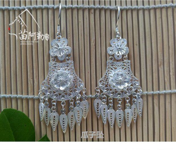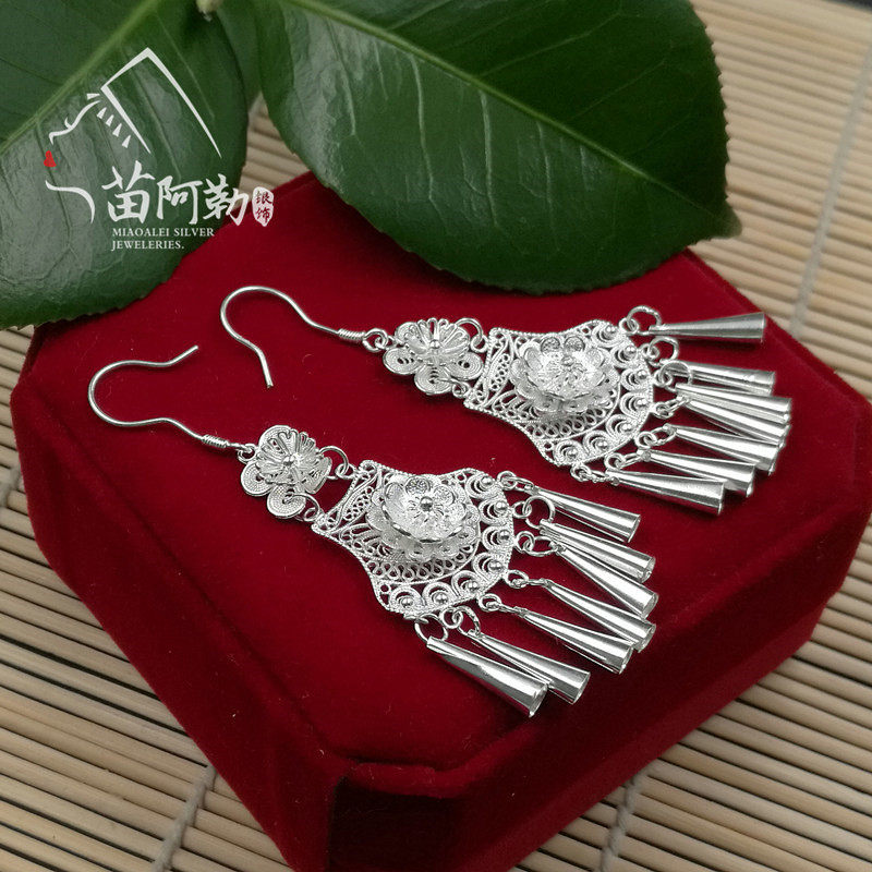 Матовые креативные этнические серьги ручной работы, серебро 999 пробы, этнический стиль, подарок на день рождения