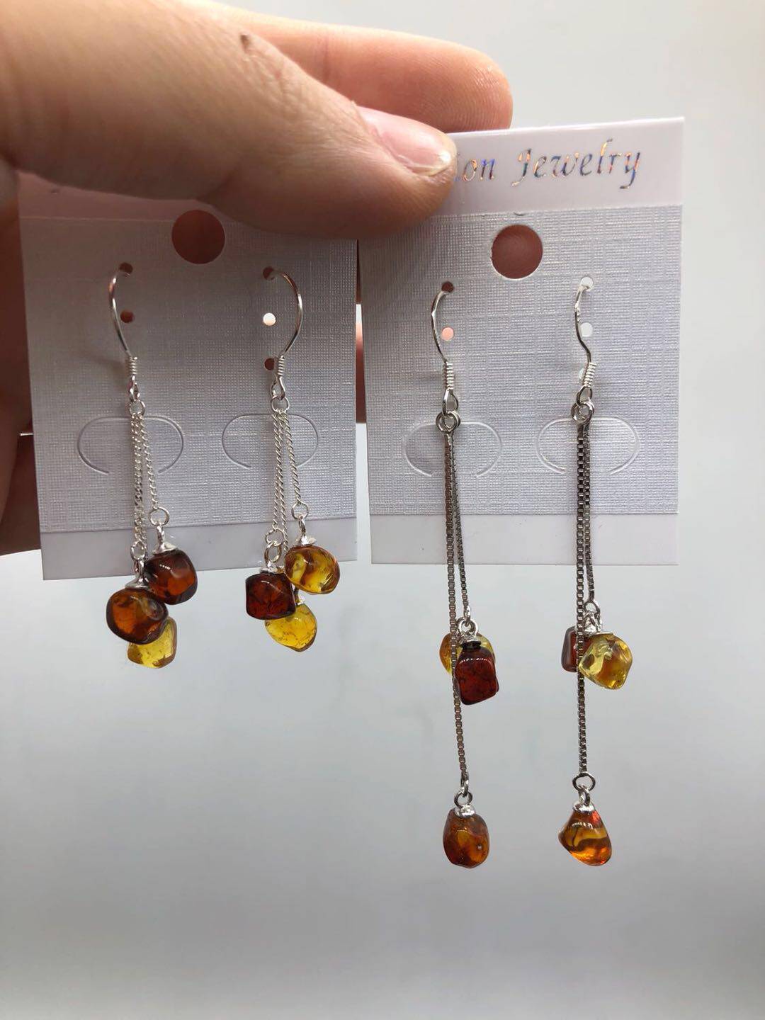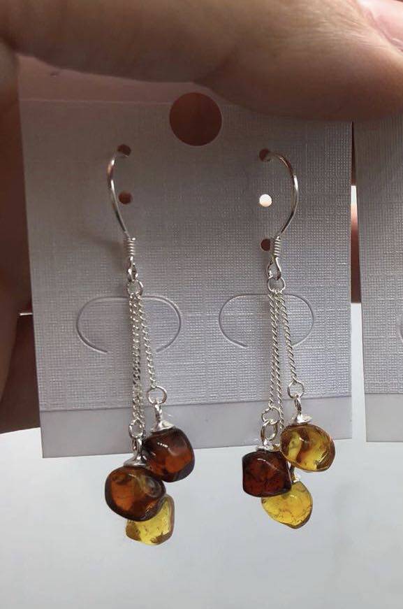 Янтарные серьги, серебро 925 пробы