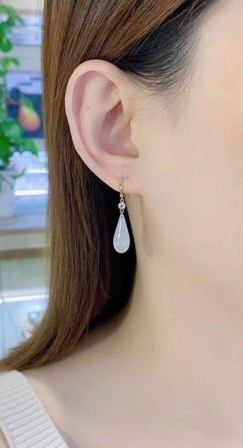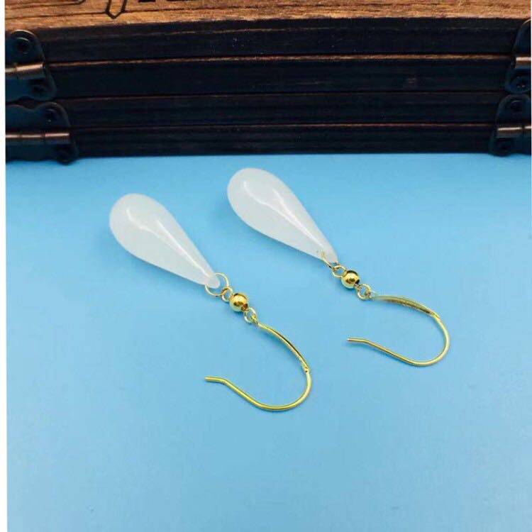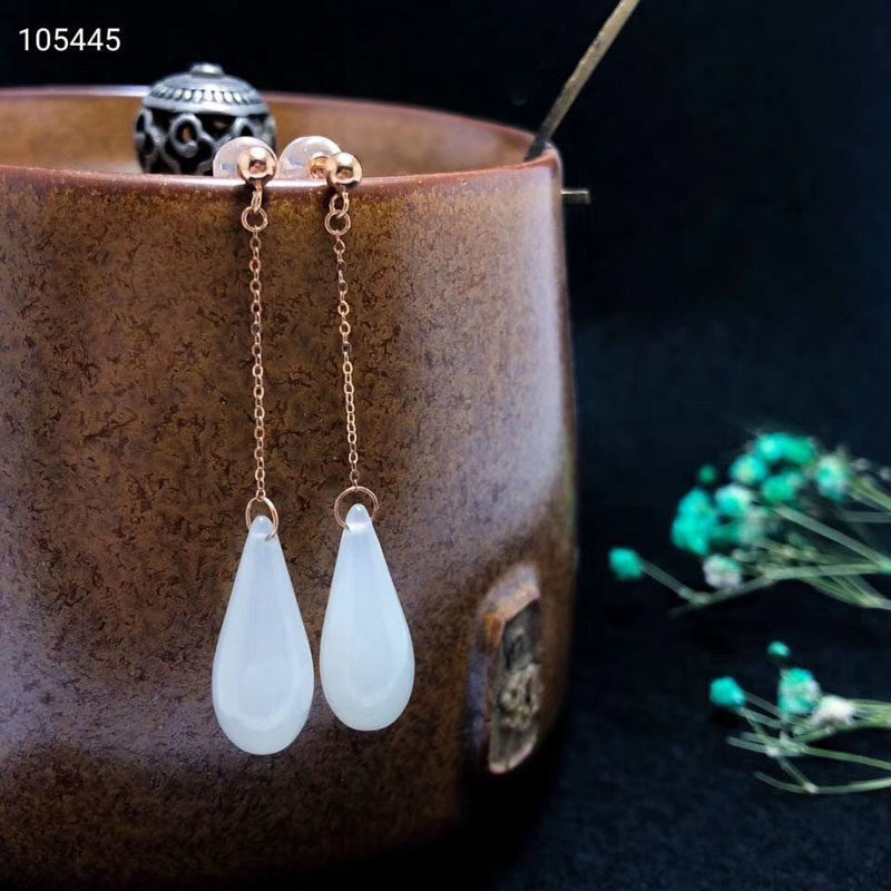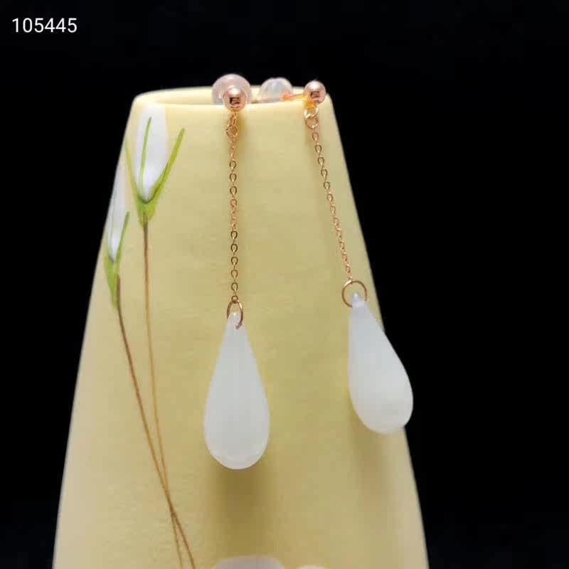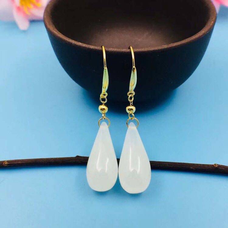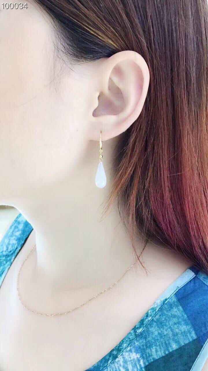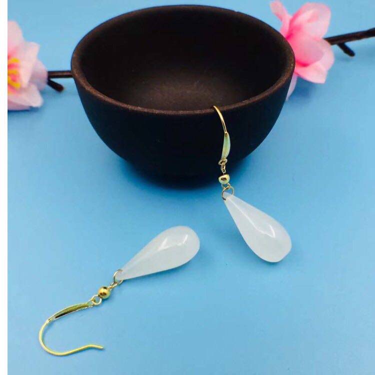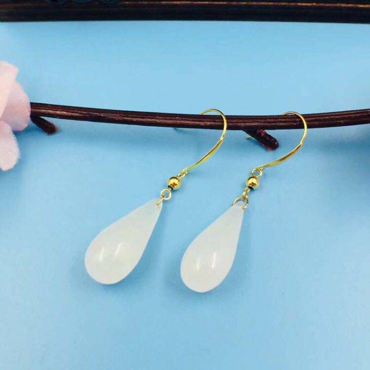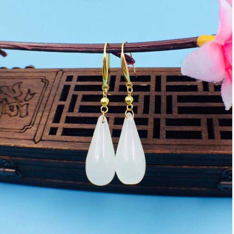 Изумрудные серьги из округа Хотан из белого нефрита в форме капли, золото 750 пробы