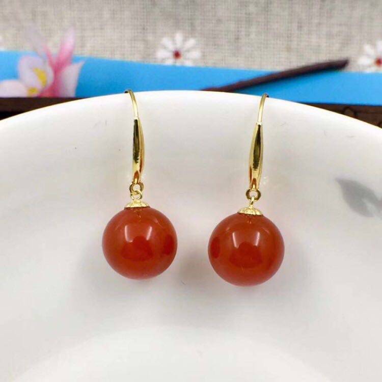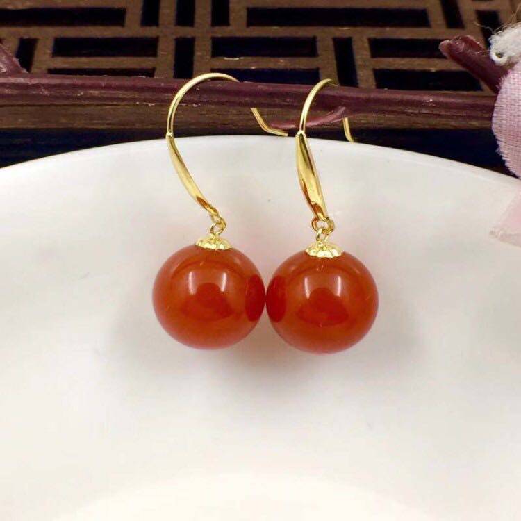Агатовые серьги, золото 18 карат