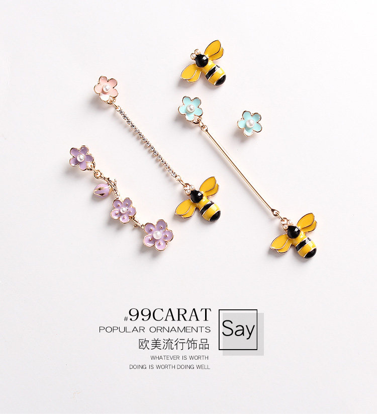 Модные асимметричные длинные серьги из жемчуга, 99 карат, японские и корейские, городской стиль, в цветочек