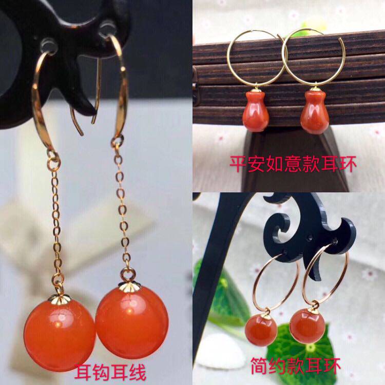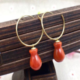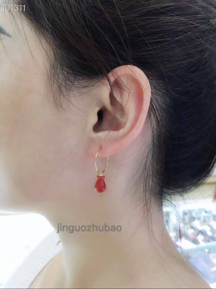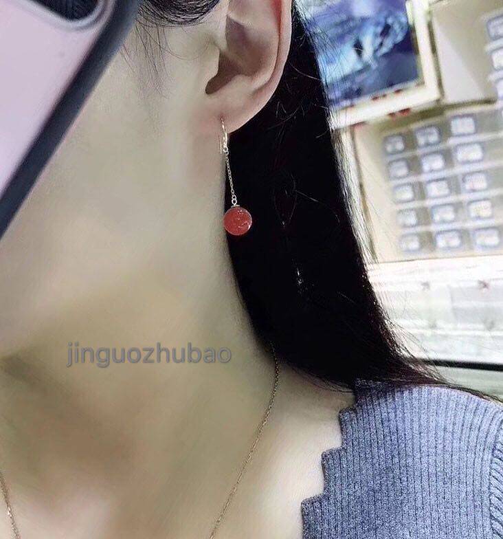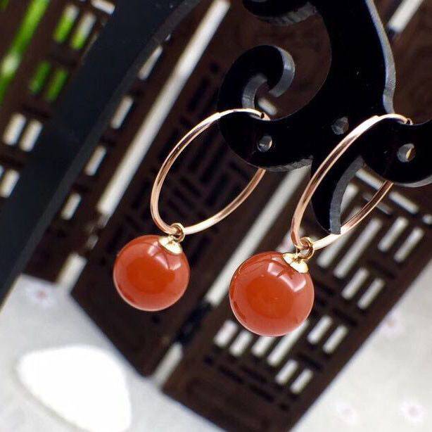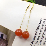 Натуральные красные агатовые рубиновые серьги из жемчуга, золото 18 карат