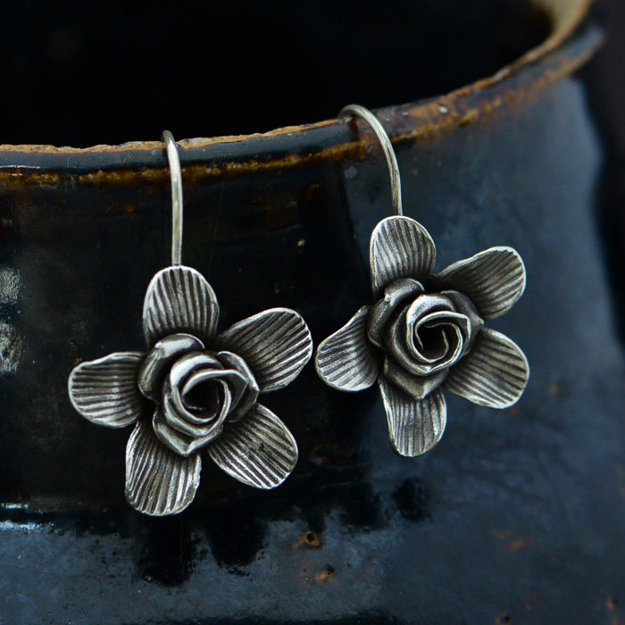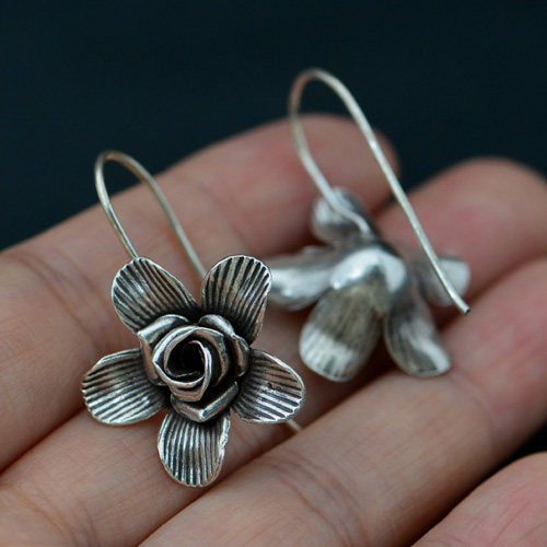 Серьги ручной работы, Таиланд, серебро 925 пробы, в цветочек