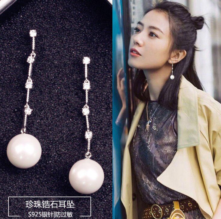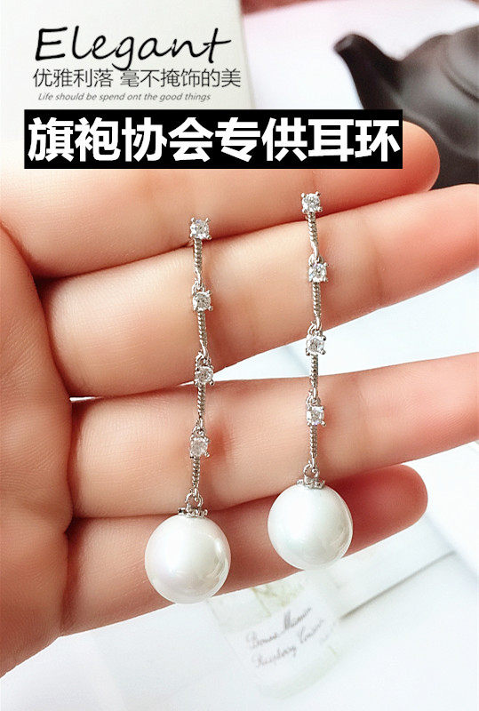 Серьги, длинная подвеска, ципао, аксессуар из жемчуга, серебро 925 пробы