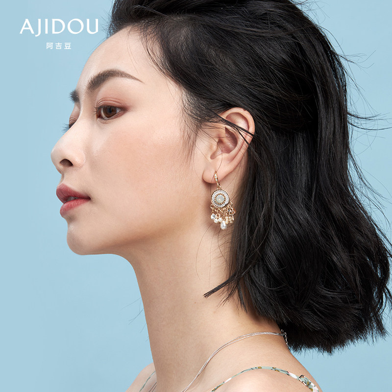 Этнические ретро серьги, кольцо из жемчуга с кисточками, этнический стиль