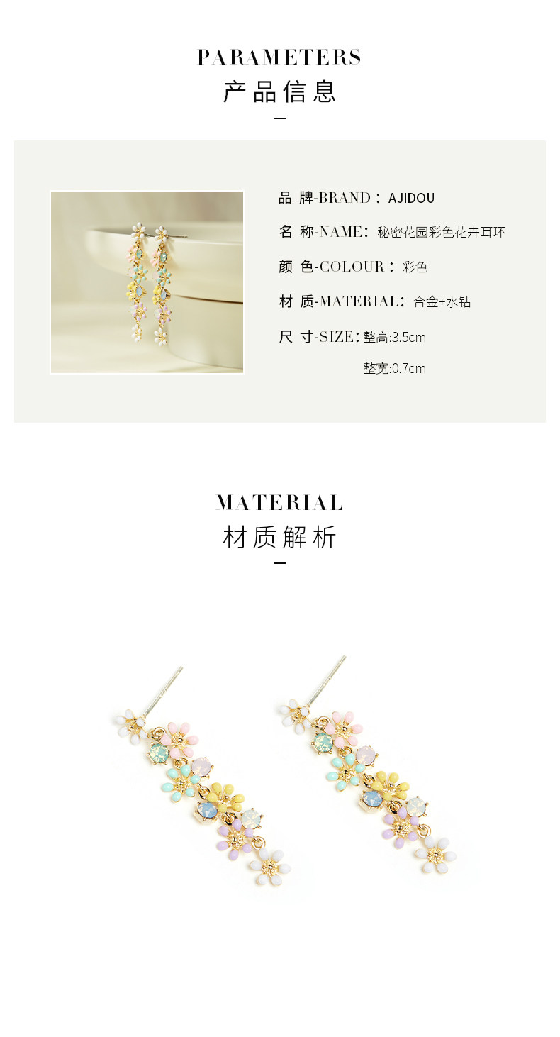Aji Doudou Secret Garden Цветочные серьги Fresh Surral Wind S Трехмерные цветочные длинные серьги Женщина