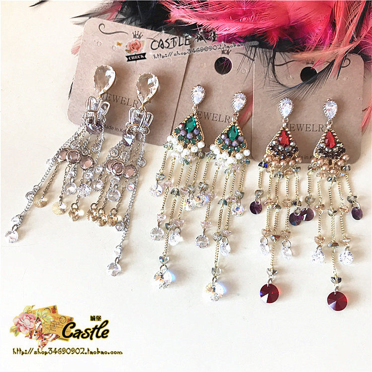 Южнокорейский товар ручной работы, алмаз с цирконом, серьги в форме капли с кисточками
