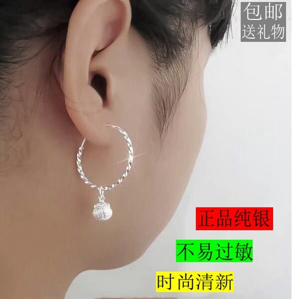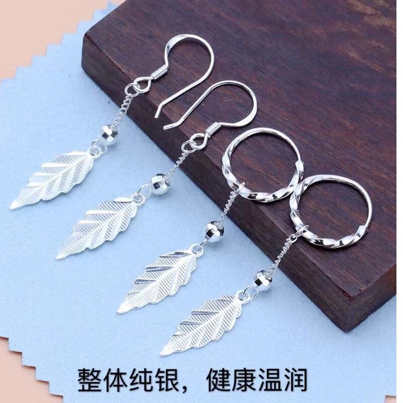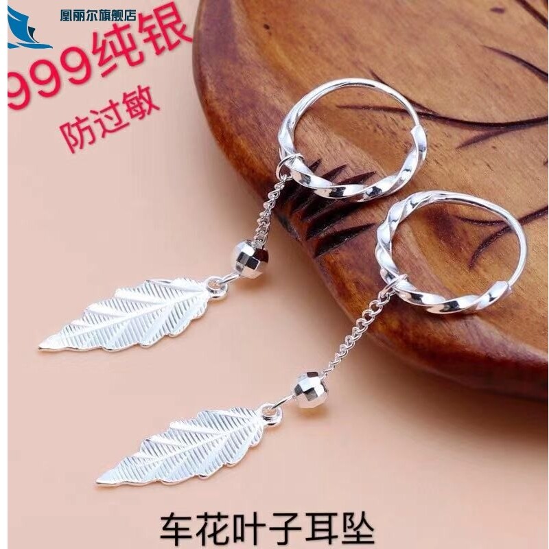Серебряный браслет, длинные гипоаллергенные серьги, серебро 999 пробы
