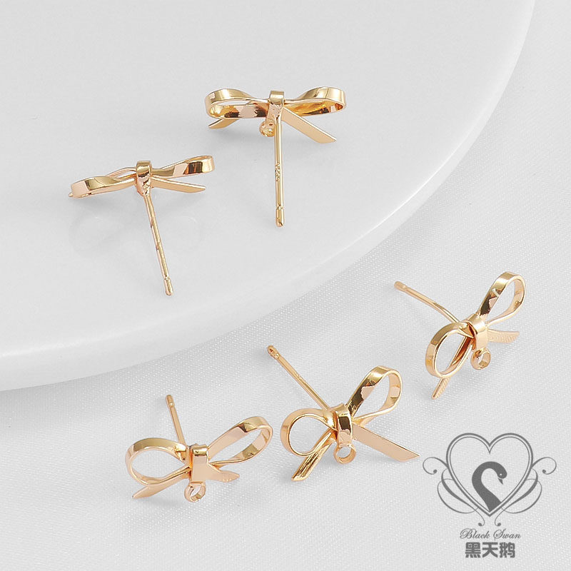 Серьги с бантиком, S925, иголка ручной работы, аксессуар, 14 карат, серебро 925 пробы, DIY