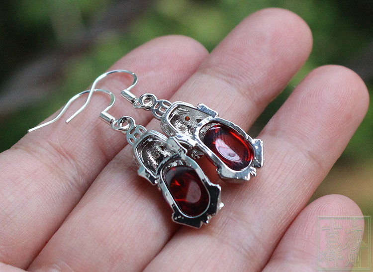 Красные короткие серьги с цирконом из нефрита, серебро 925 пробы