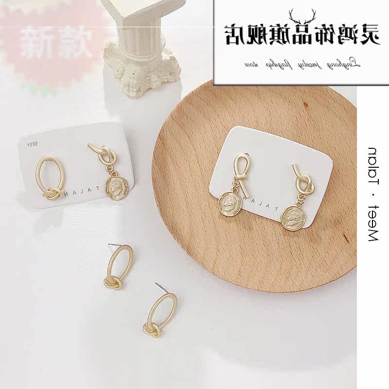 Дизайнерские монеты, асимметричные универсальные небольшие серьги, тренд сезона, городской стиль