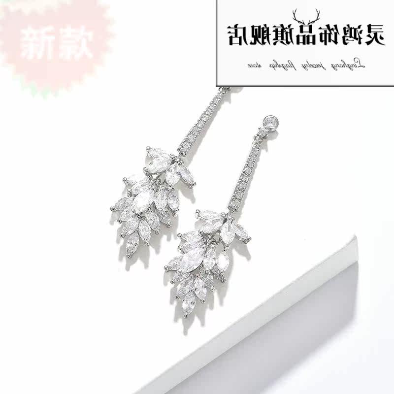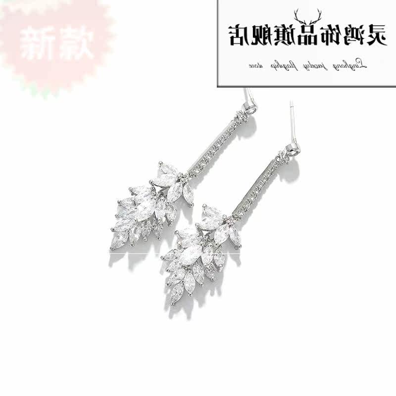 Искусственные длинные серьги с цирконом, подвеска с кисточками, серебро 925 пробы, микроинкрустация