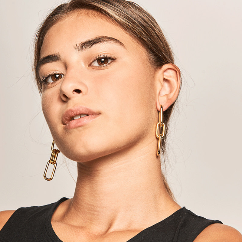 PD Paola Золотые геометричные длинные небольшие дизайнерские серьги, европейский стиль