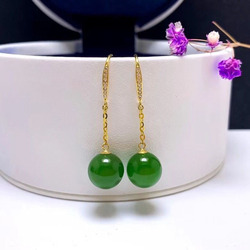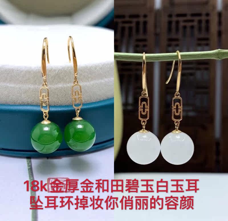 Натуральная яшма из округа Хотан из белого нефрита, изумрудные модные серьги из нефрита, золото 18 карат