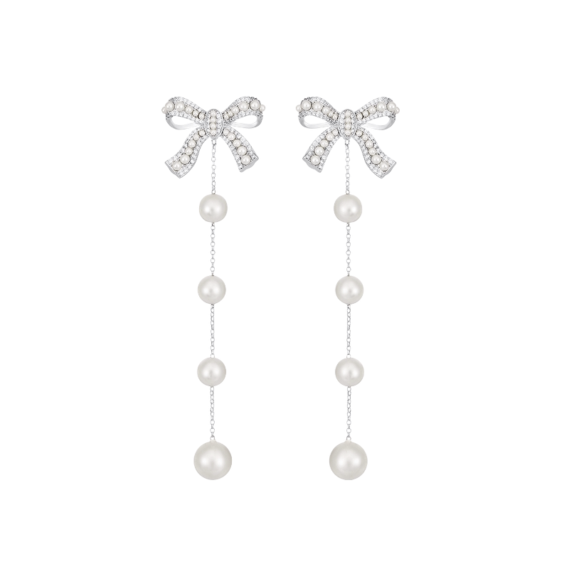 Модная цепочка с бантиком из жемчуга, серьги, в стиле Шанель, градиент
