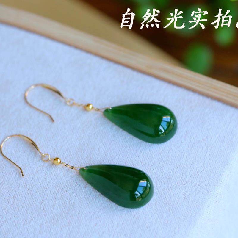 Натуральная яшма из округа Хотан в форме капли, серьги, инкрустация камня, ципао, ханьфу, серебро 925 пробы