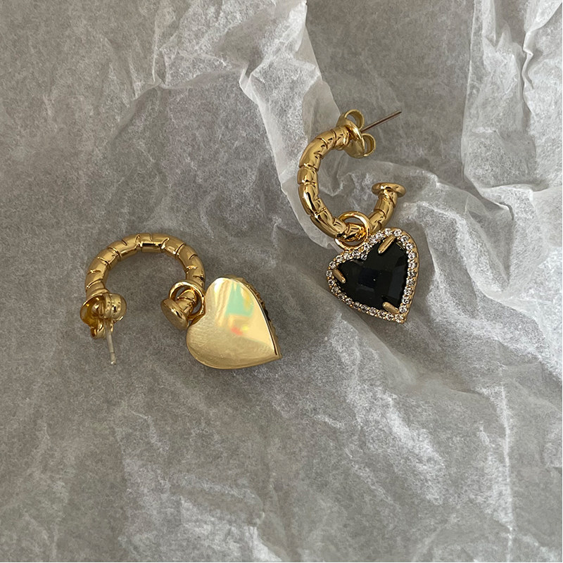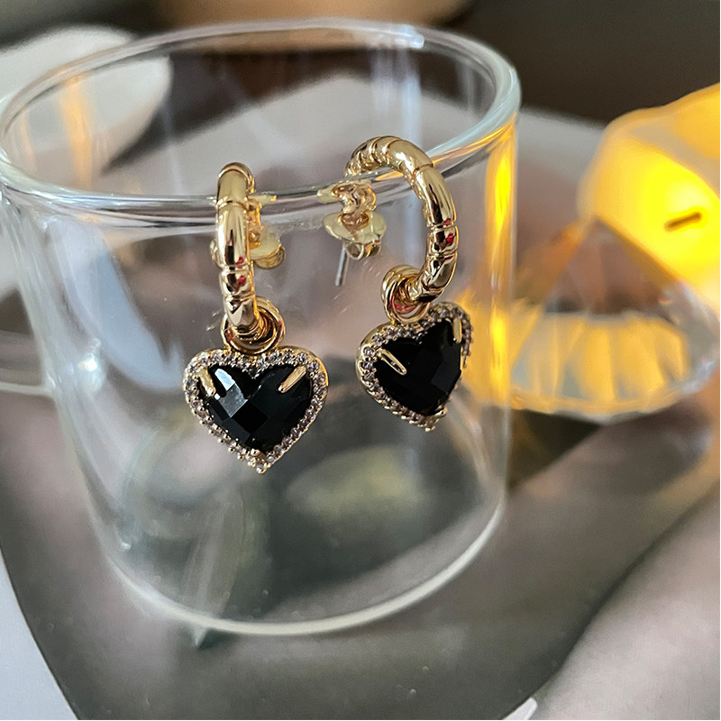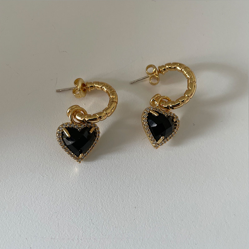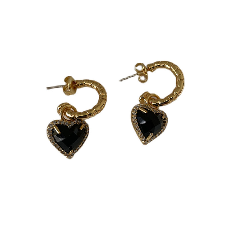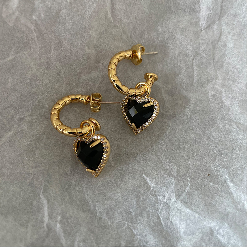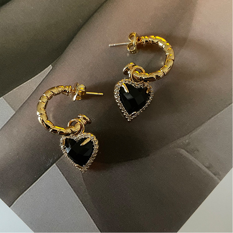 Европейские и американские винтажные черные серьги Love Nazha Same Love с черными кристаллами C-образные полукруглые персонализированные серьги