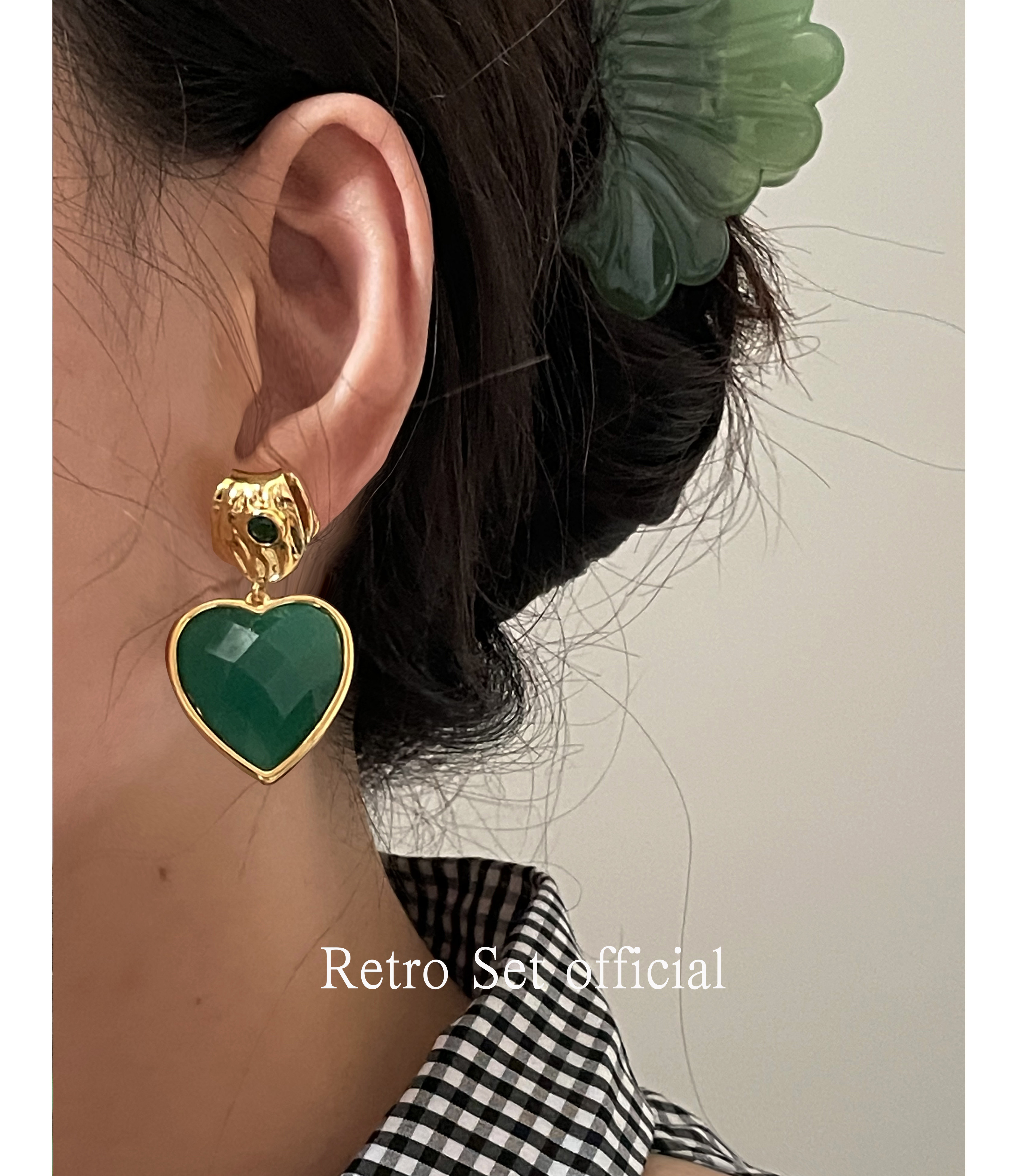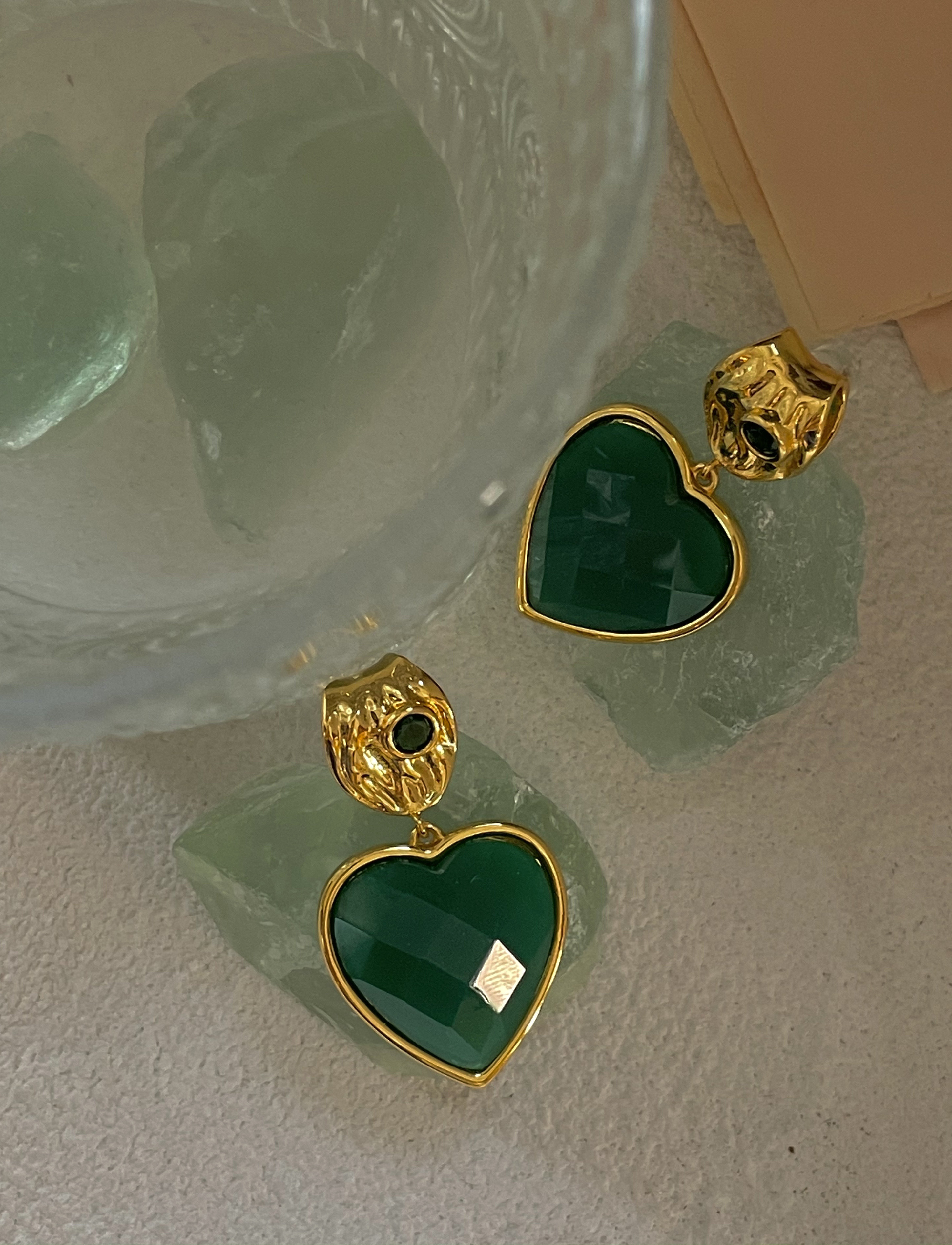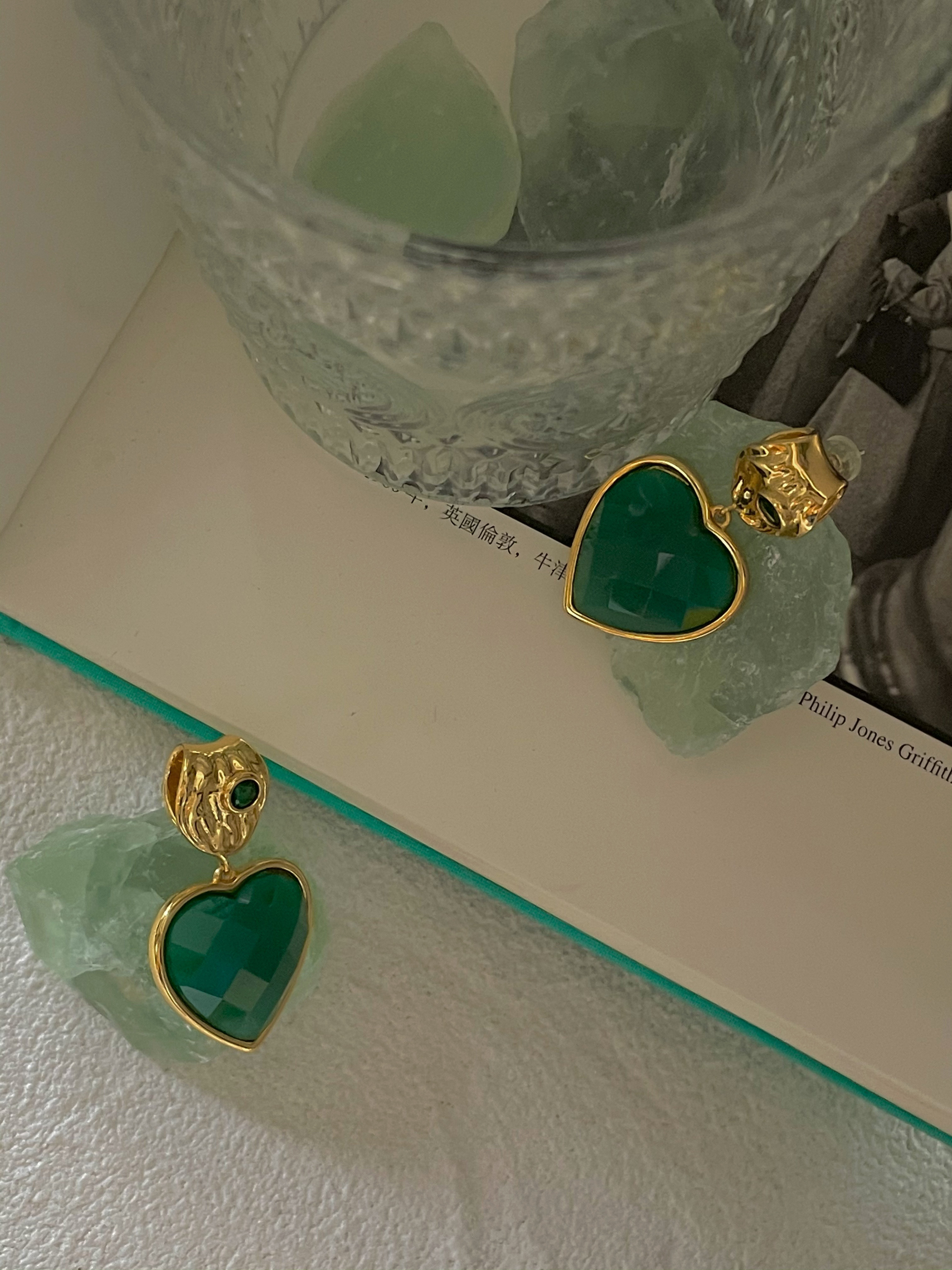Изумрудные демисезонные универсальные ретро агатовые серьги, французский стиль, изысканный стиль, серебро 925 пробы