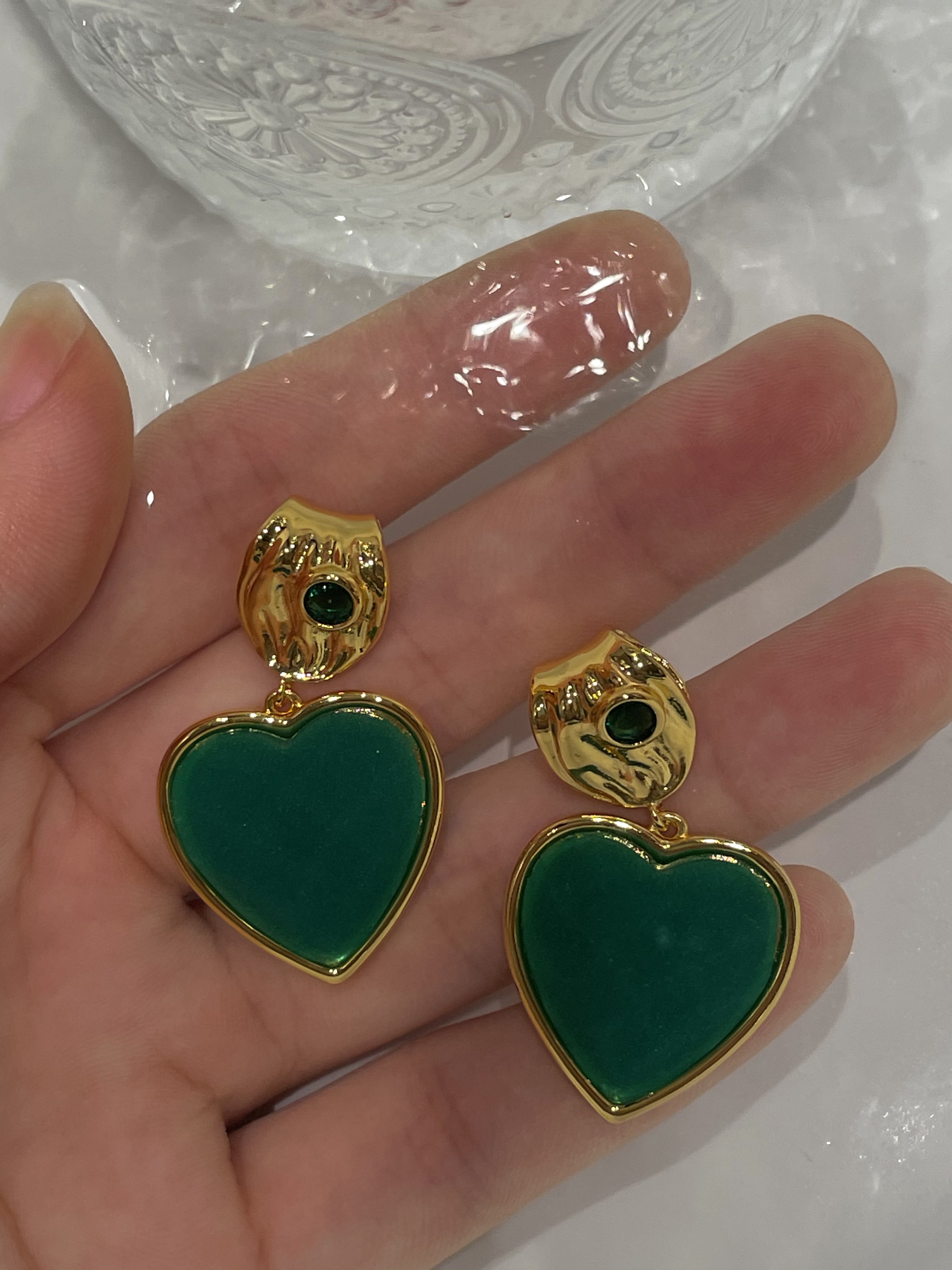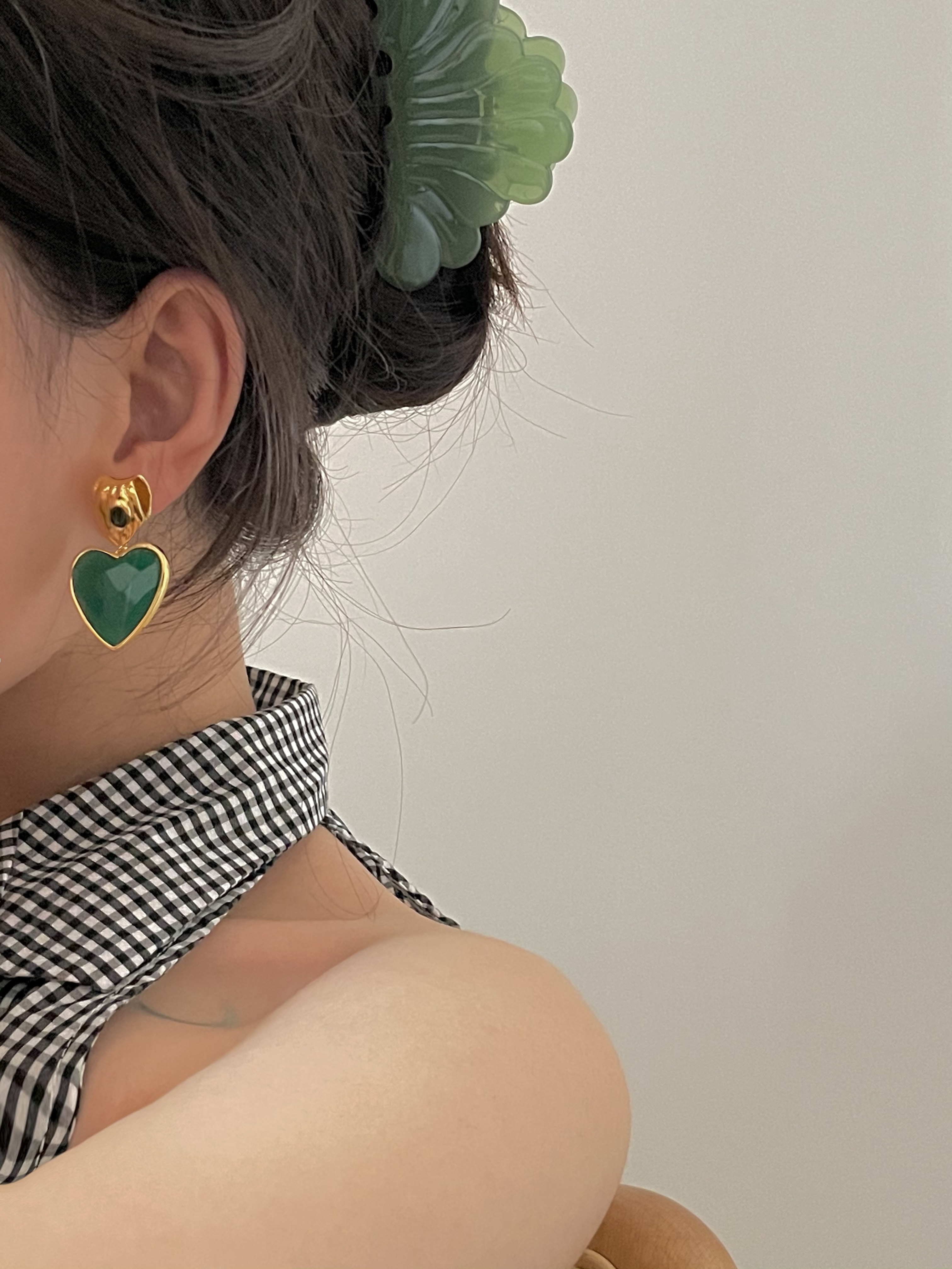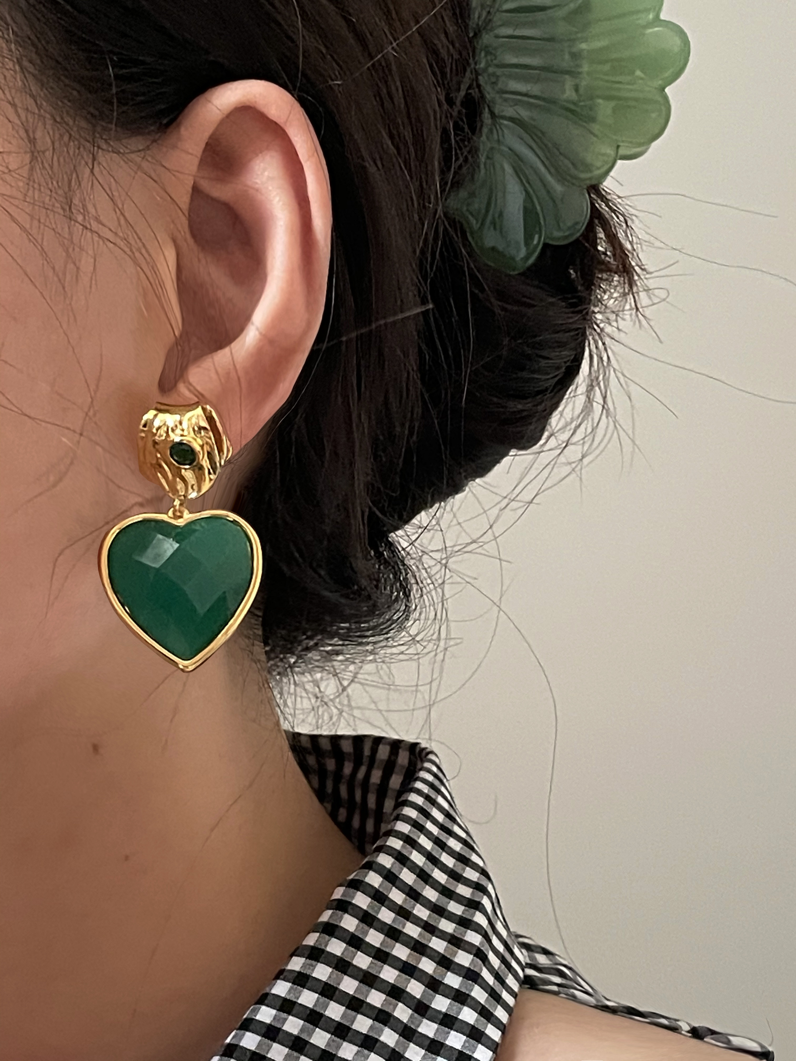 Изумрудные демисезонные универсальные ретро агатовые серьги, французский стиль, изысканный стиль, серебро 925 пробы