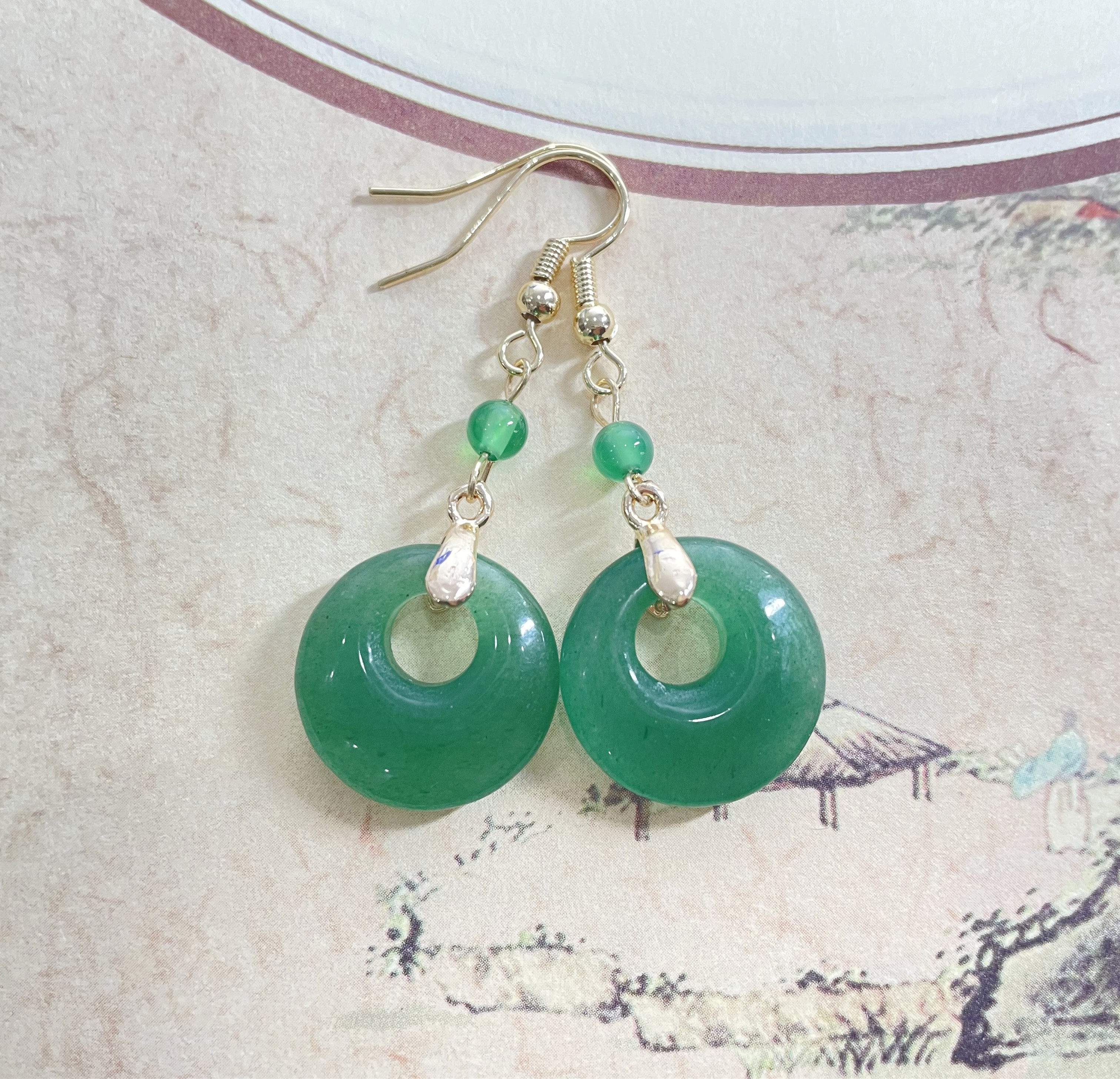 Натуральные модные классические серьги из нефрита для принцессы, 14 карат