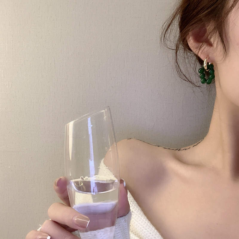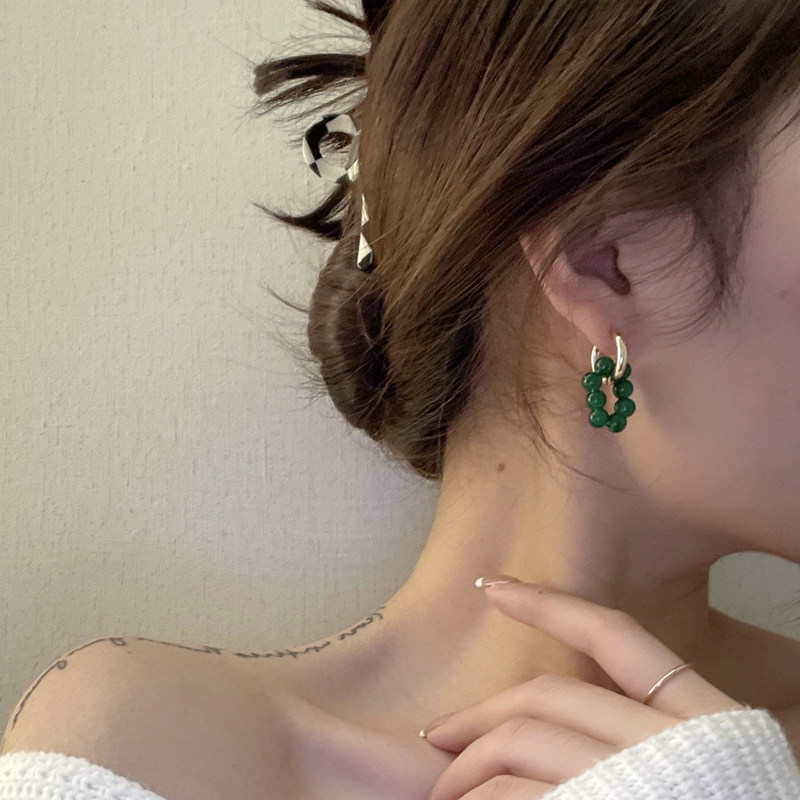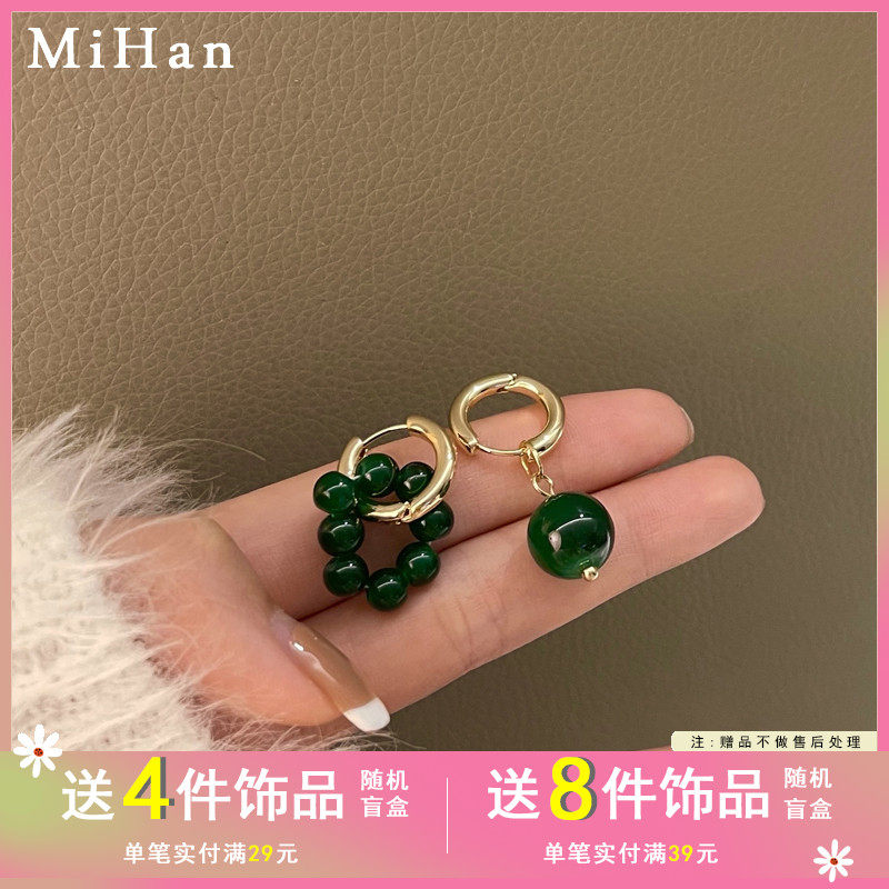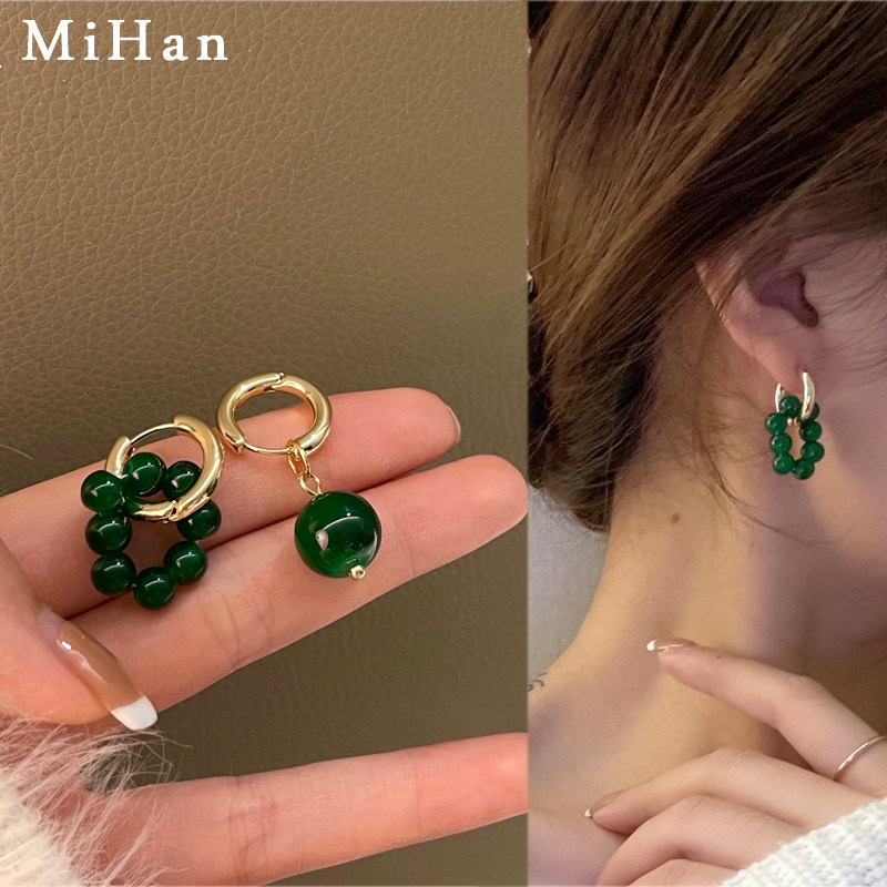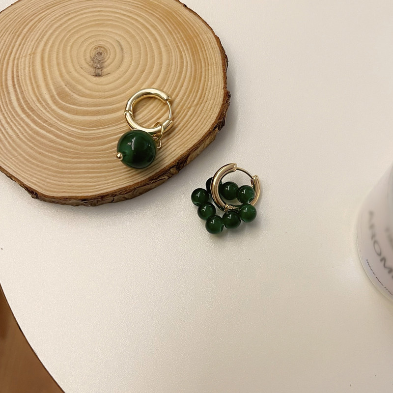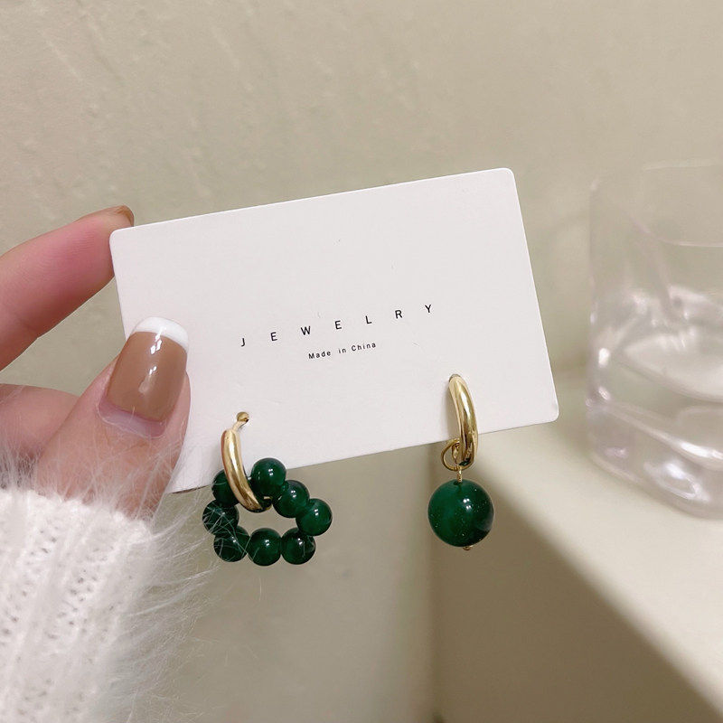 Ретро зеленый асимметричный браслет из бисера, серьги, 2021 года
