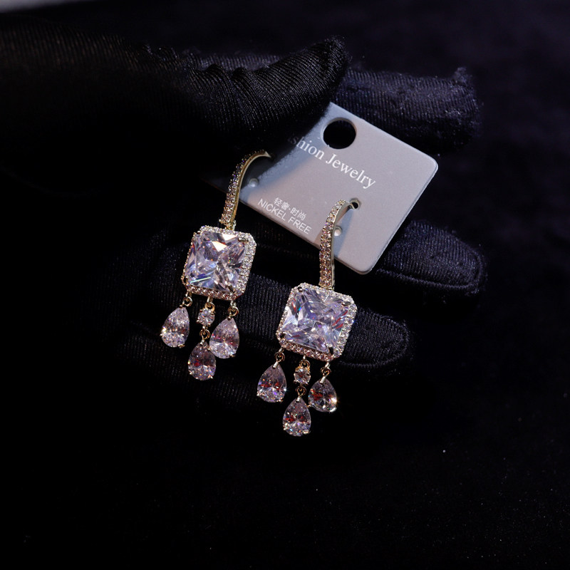 Универсальные серьги с цирконом, вечернее платье, аксессуар для невесты, японские и корейские