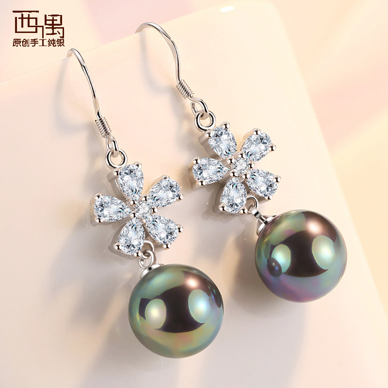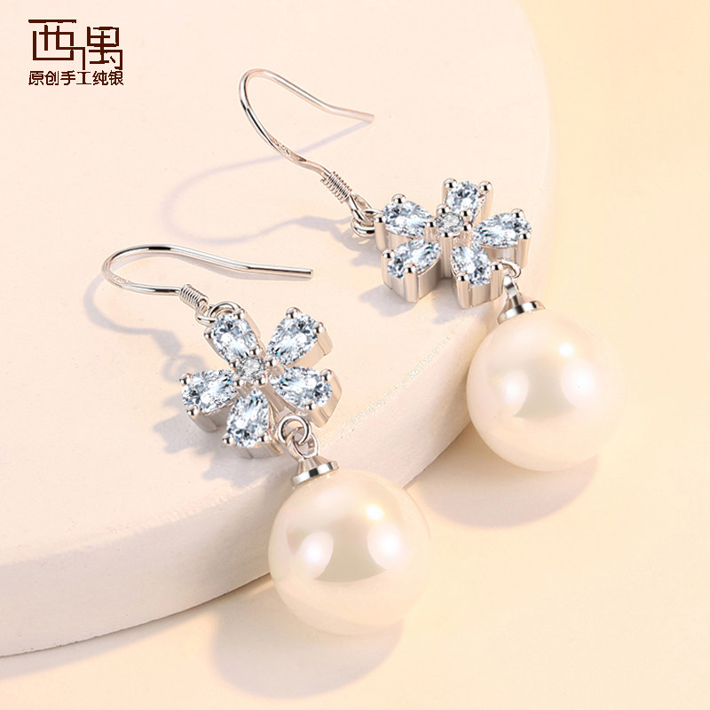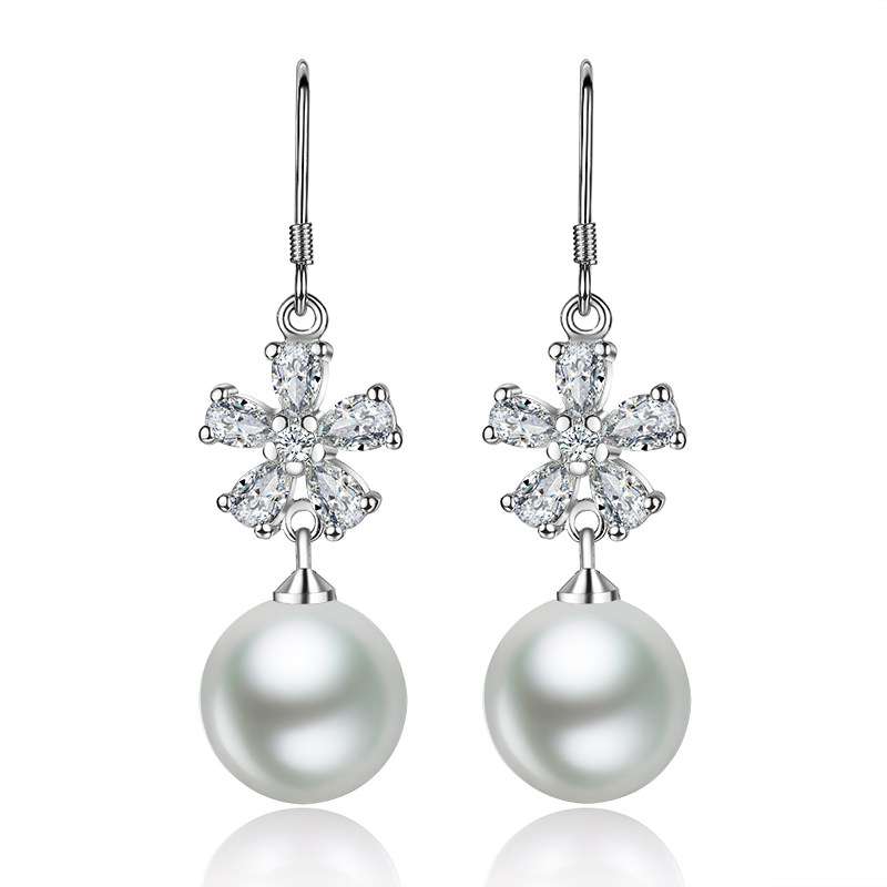 Серьги из жемчуга, элегантная гипоаллергенная инкрустация камня, серебро 925 пробы, в цветочек, коллекция 2022
