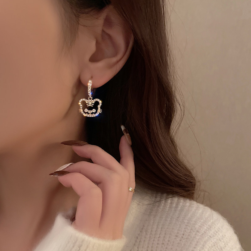 | Цвет: | Маленькая пряжка для ушей тигра, Полный бриллиантовый тигр - серьги |
