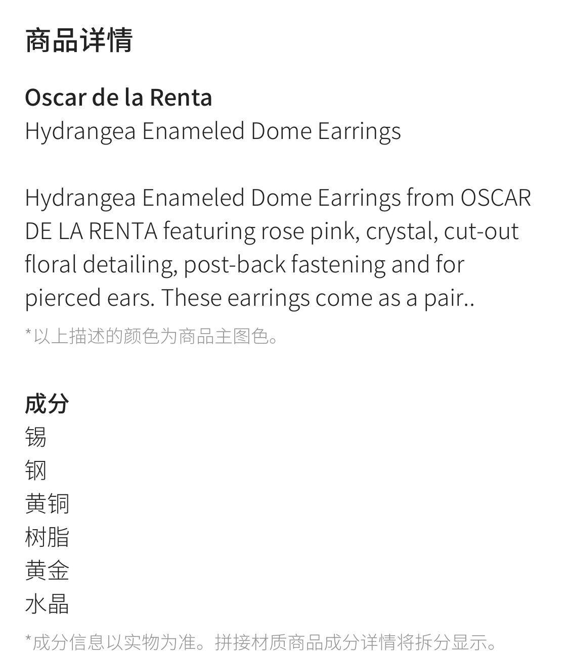 Оскар де ла Рента, г -жа Хидрангея Эмалированные Серьги купола