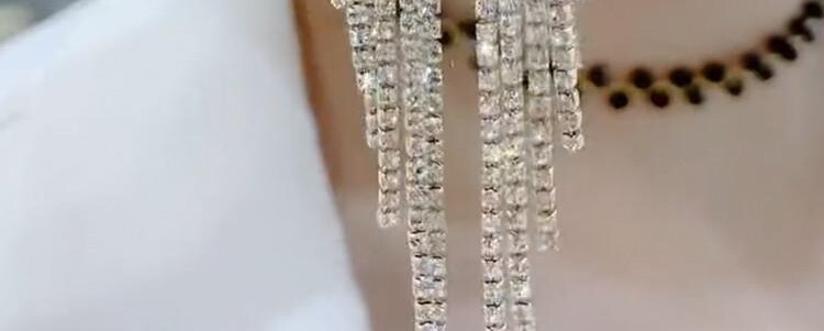 Модное изысканное длинное платье с кисточками, серьги, коллекция 2023, премиум класс, серебро 925 пробы