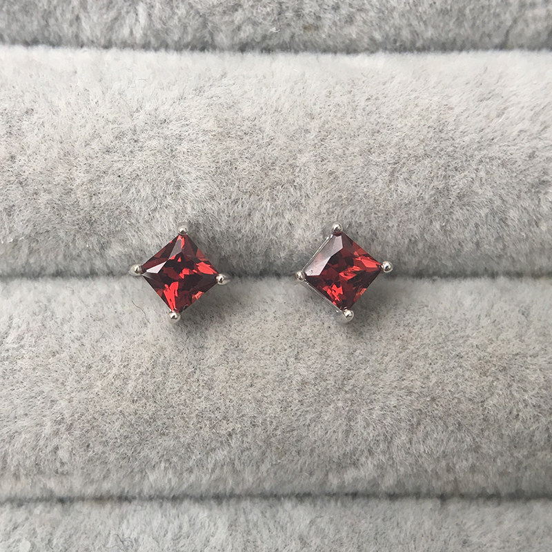 Натуральные платиновые серьги для принцессы из граната, 4mm, серебро 925 пробы, двойное ношение