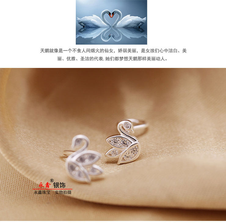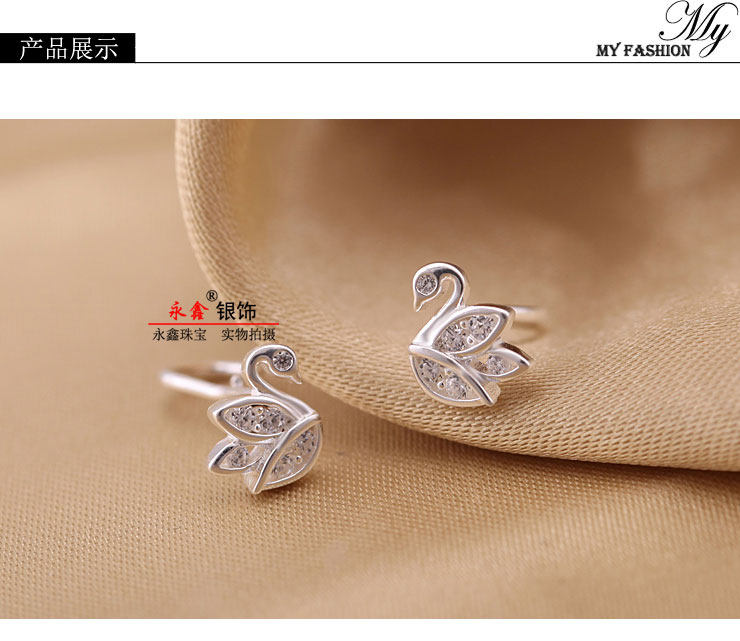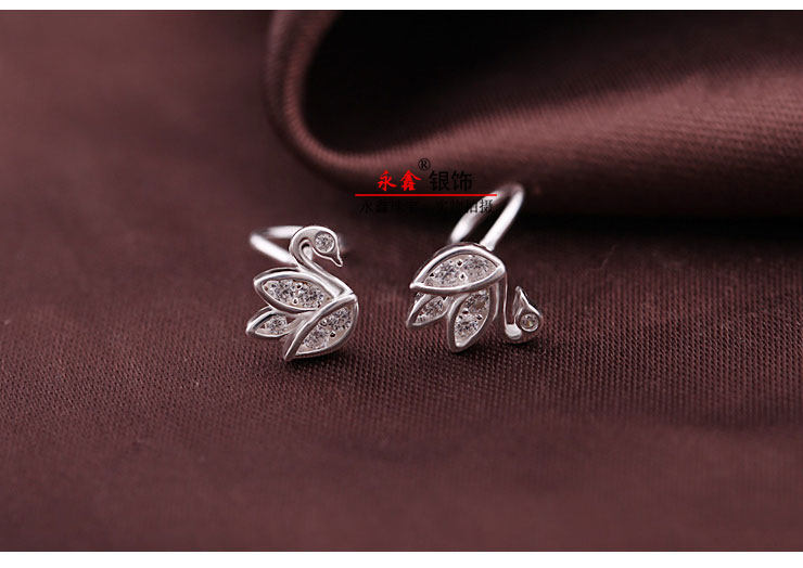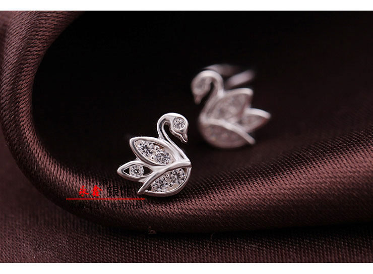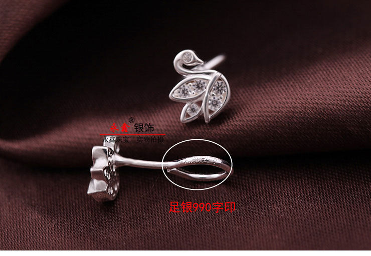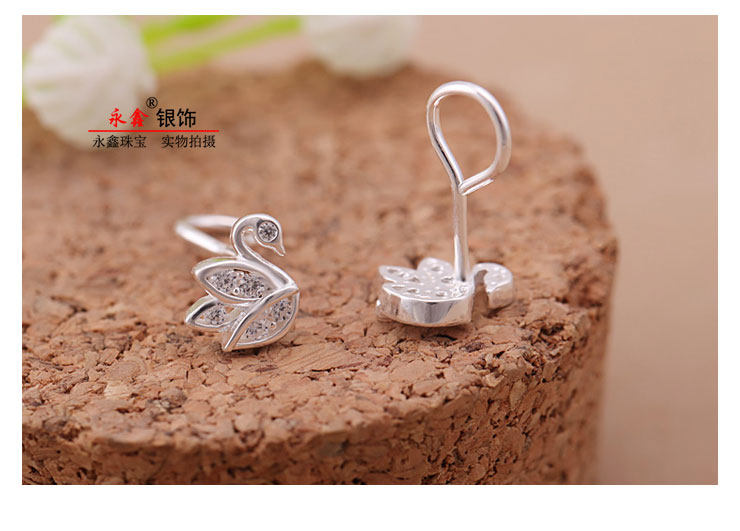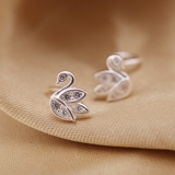 Синтезированный лебедь, гипоаллергенные серьги с кварцем с цирконом, серебро 999 пробы