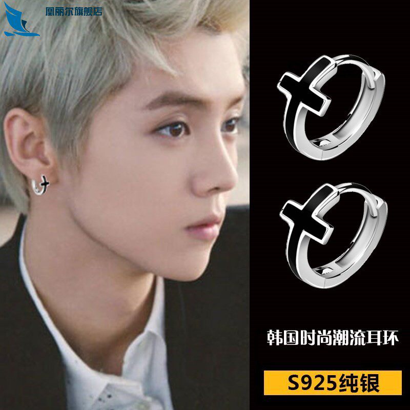 Черные модные серьги, серебро 925 пробы, в корейском стиле